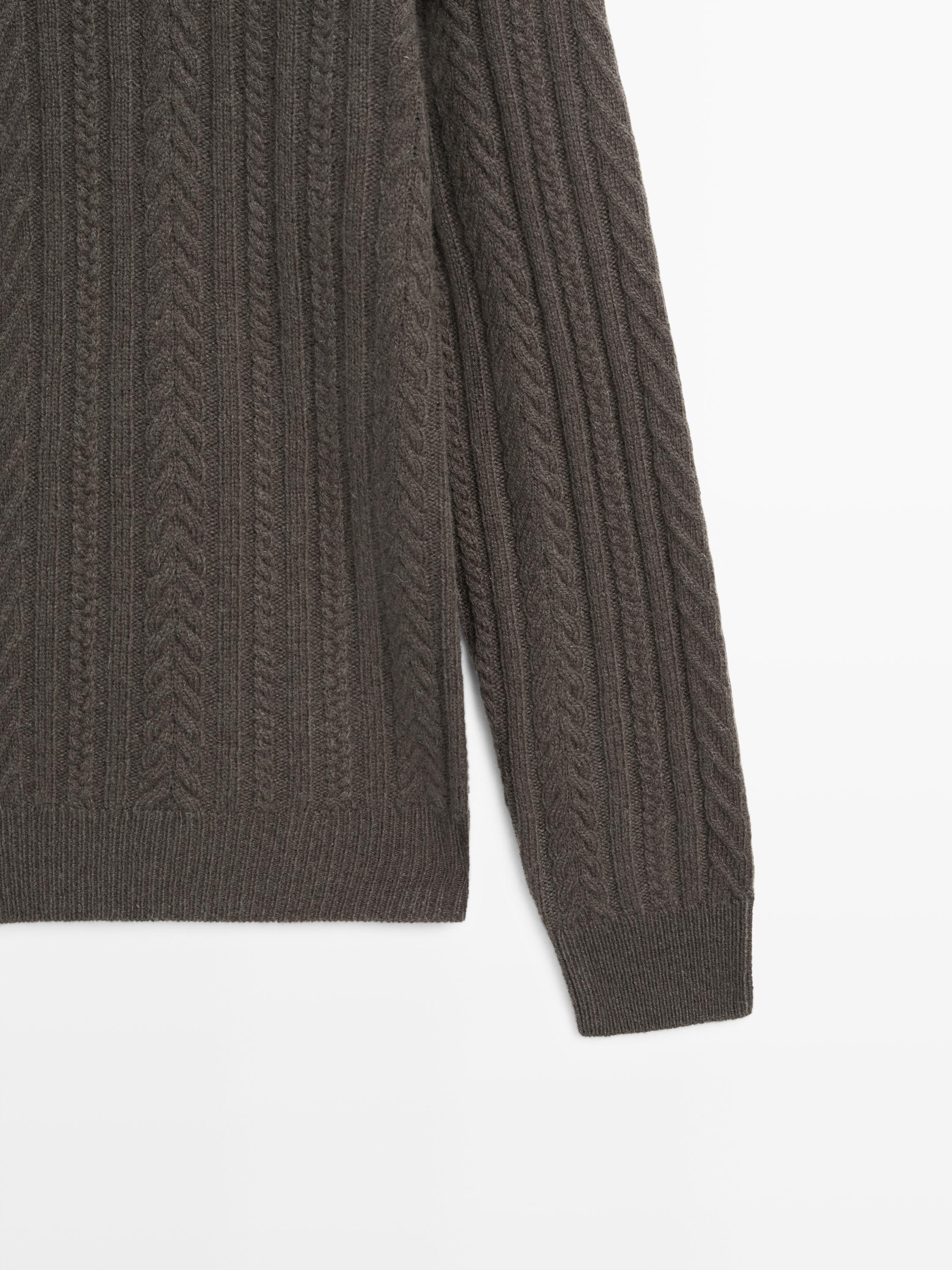 Knit sweater made of a wool blend fabric . Crew neck. Long sleeves. Braided detail. Textured fabric.
