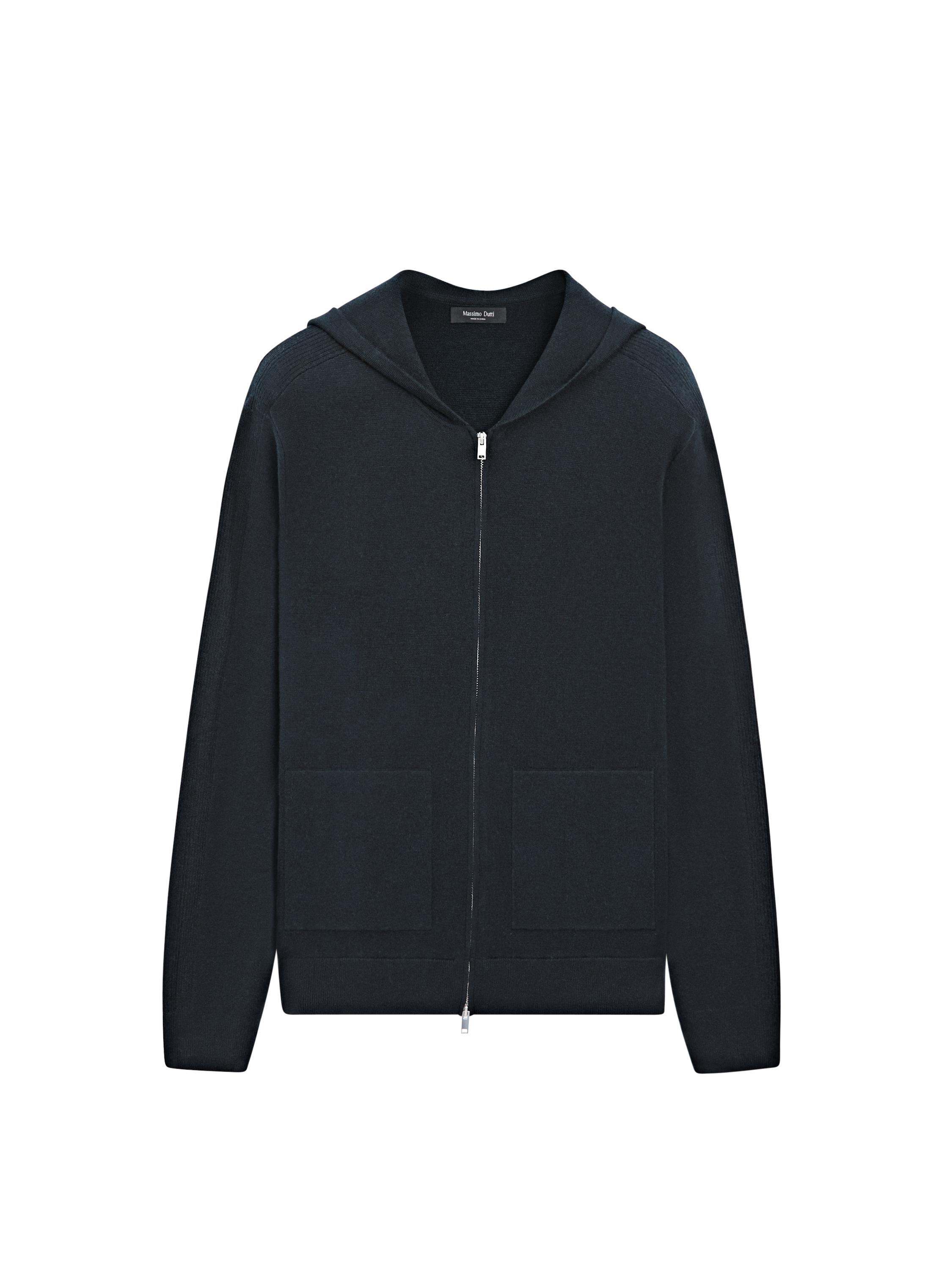 Cardigan en laine mélangée . Manches longues. Fermeture Éclair. Col à capuche.
