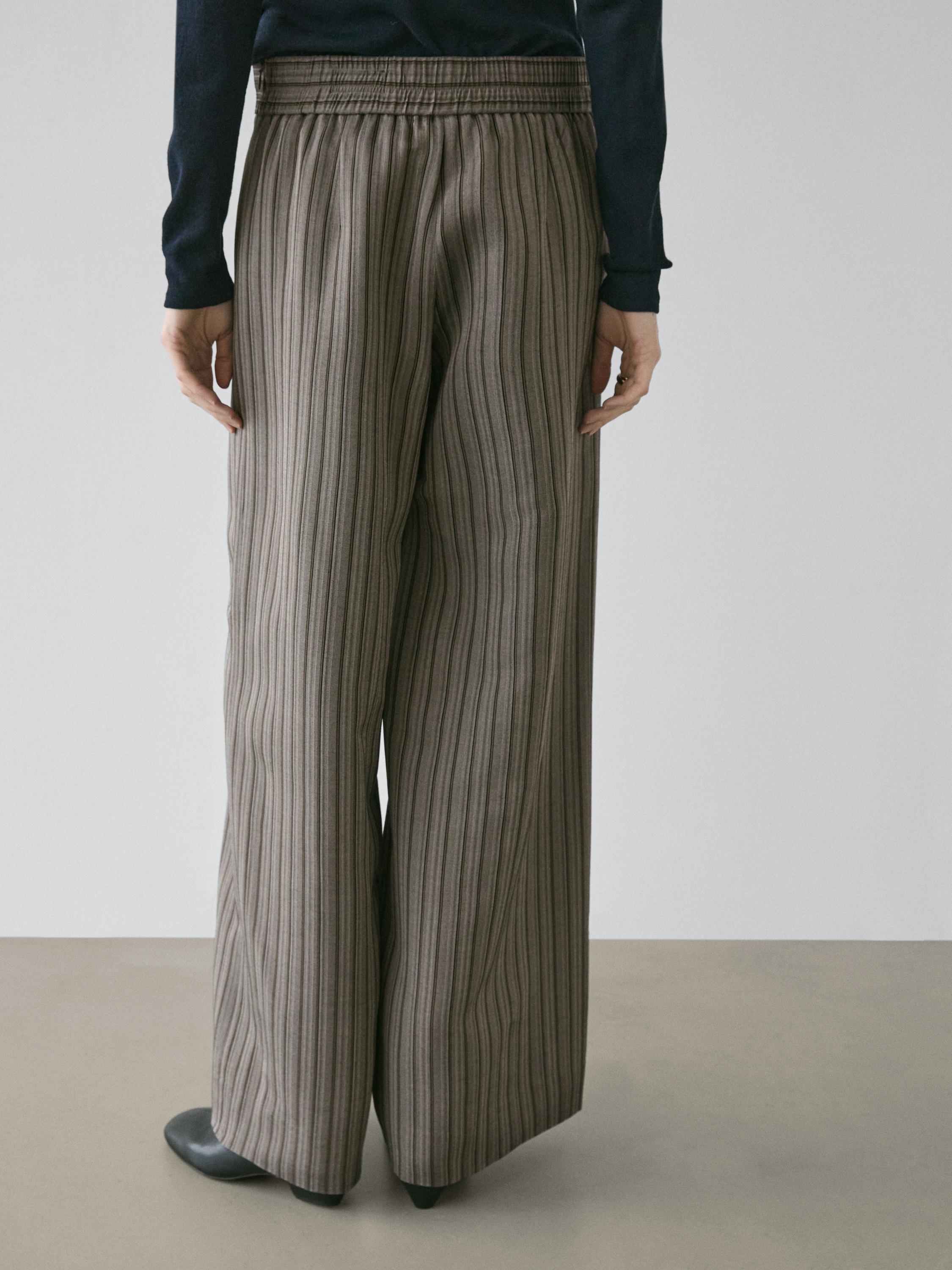 Pantalon large. Taille large avec effet gainant . Imprimé rayures.