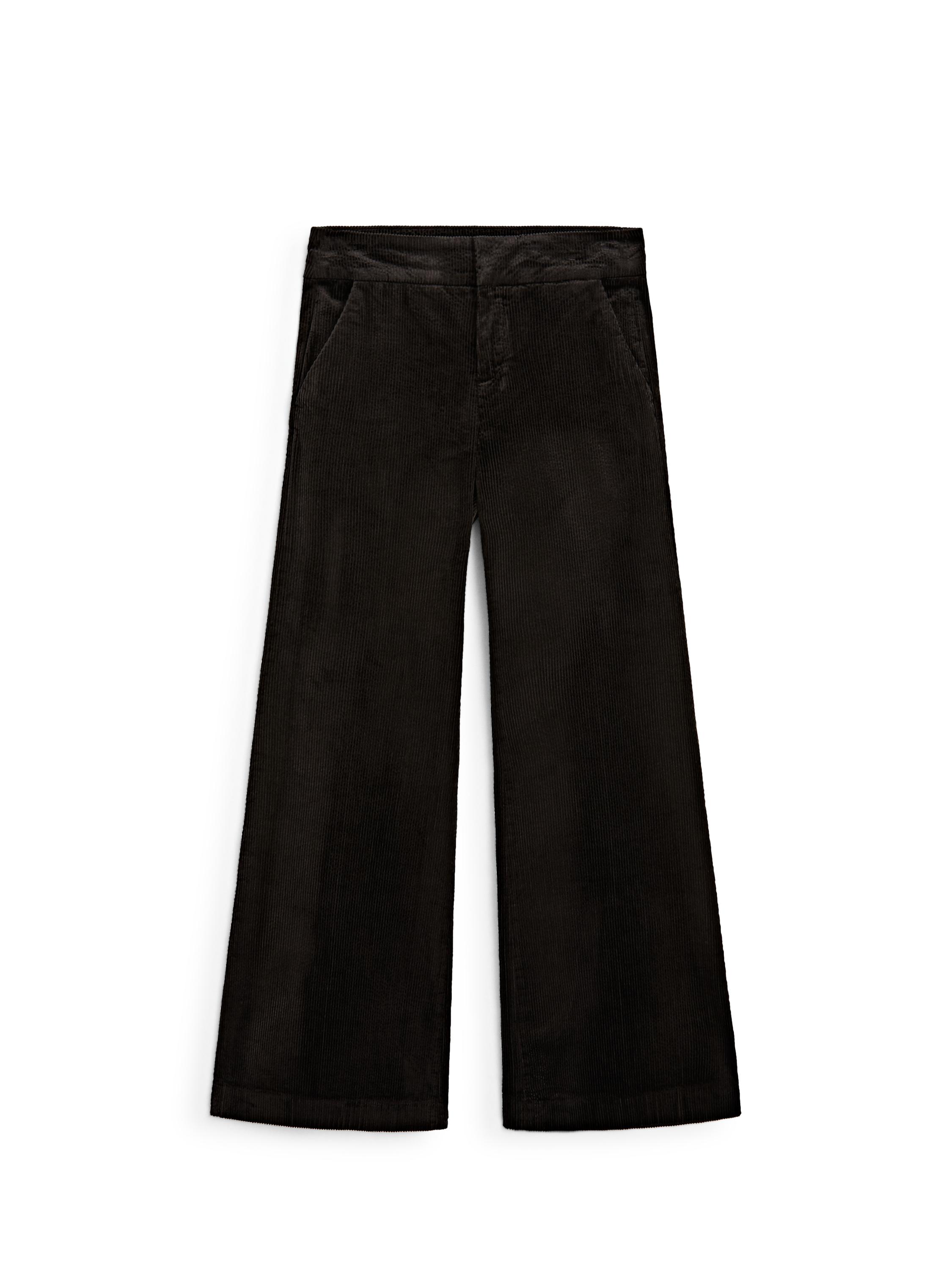 Pantalon de coupe palazzo : cette coupe se caractérise par une taille cintrée et une jambe large de la hanche à l'ourlet.. Taille moyenne. Fermeture éclair invisible avec patte et crochet . Deux poches sur les côtés. Deux poches passepoilées dans le dos. Tissu élastique.