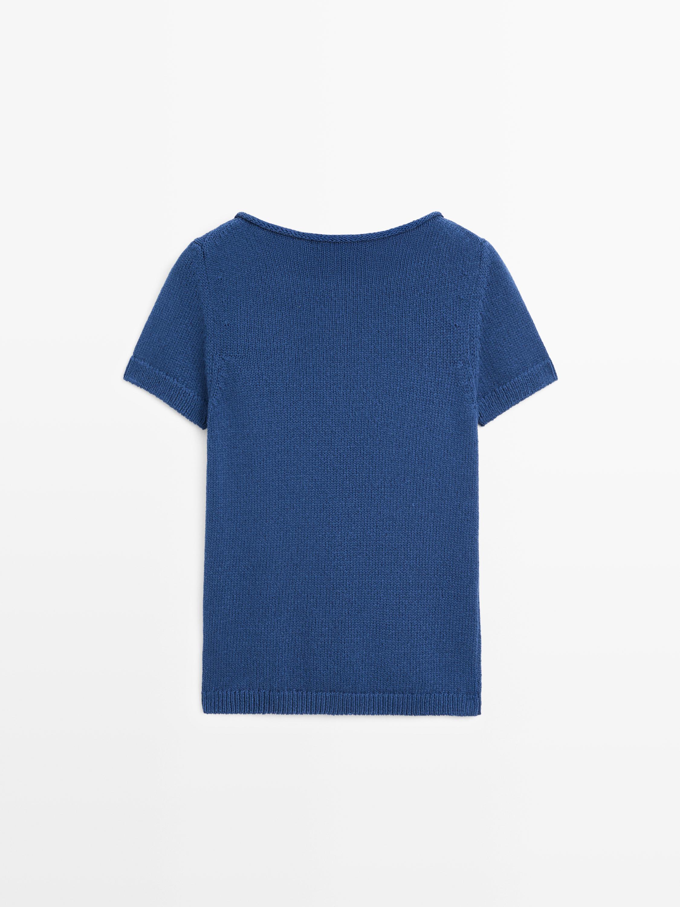 Voir le look Short-sleeved knitted jumper with cotton 59,95 € Couleur: Bleu Azur BIENTÔT DISPONIBLE - NOTIFIEZ-MOI