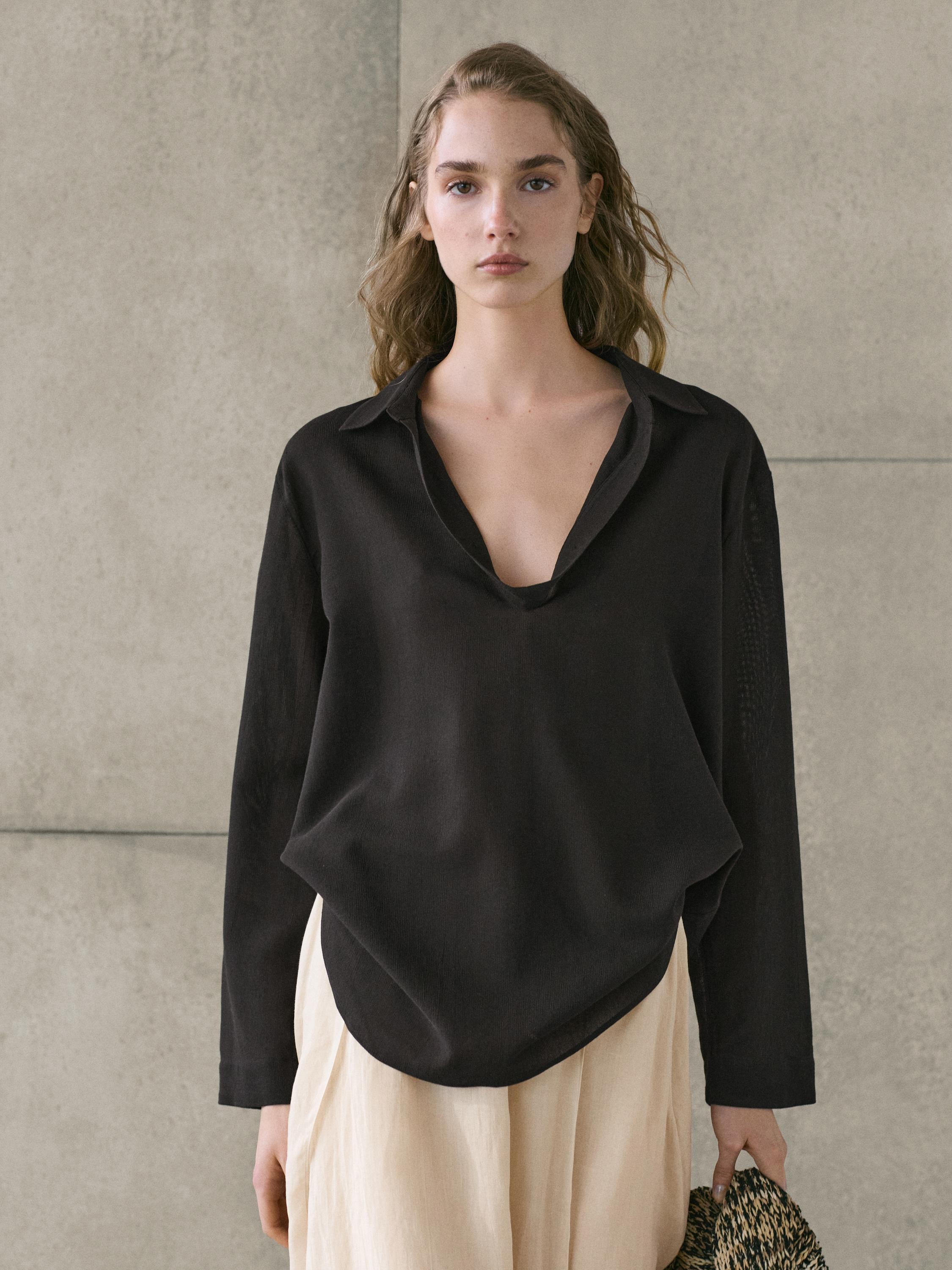 Flowing skirt. Side zip fastening. Side vents at the hem. Narrow waistband.