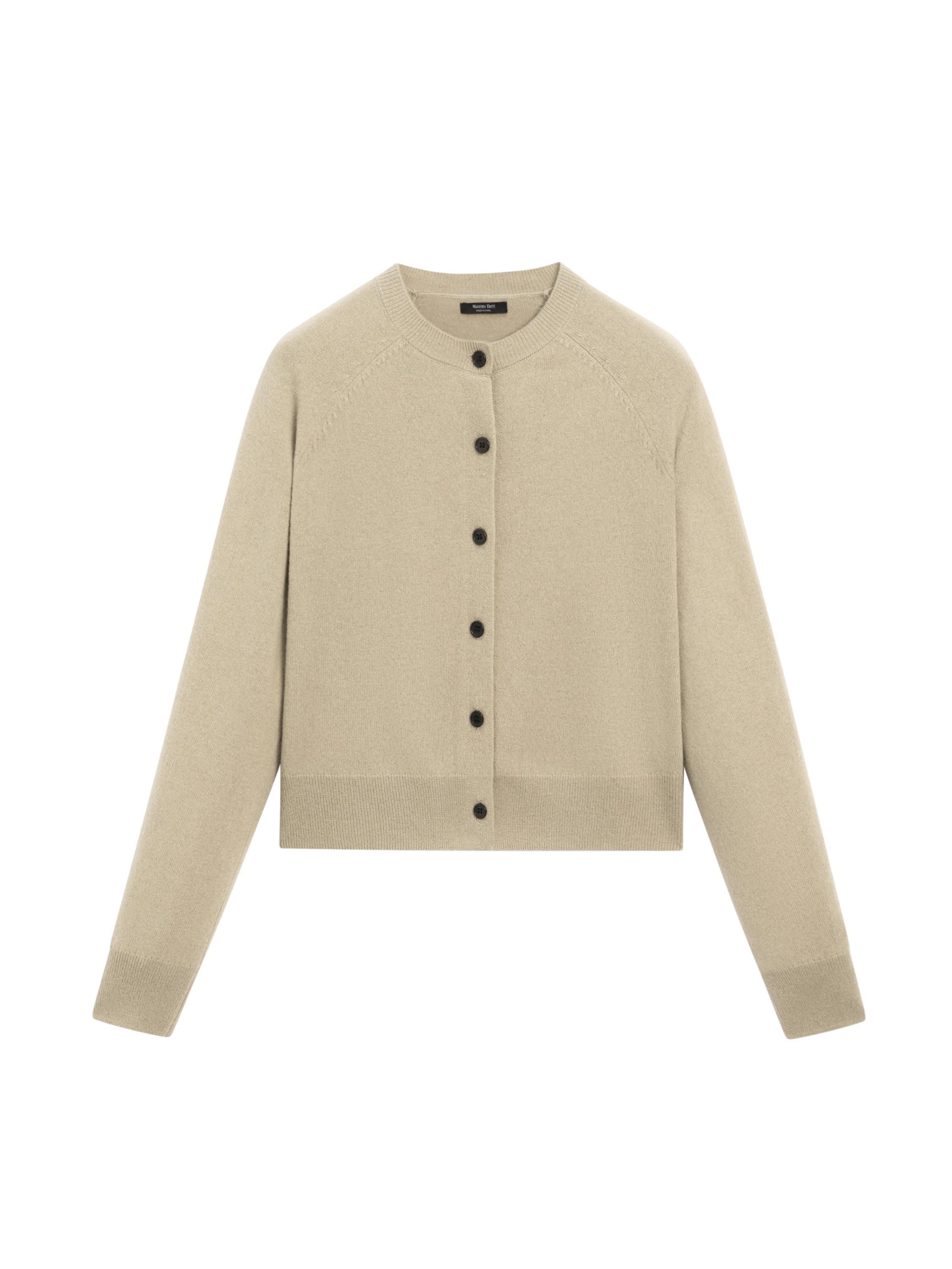 Wool blend knitted cardigan. Slightly fitted silhouette, providing a more defined and slim appearance. Crew neck. Raglan sleeve. Button-up front. Ribbed trims .