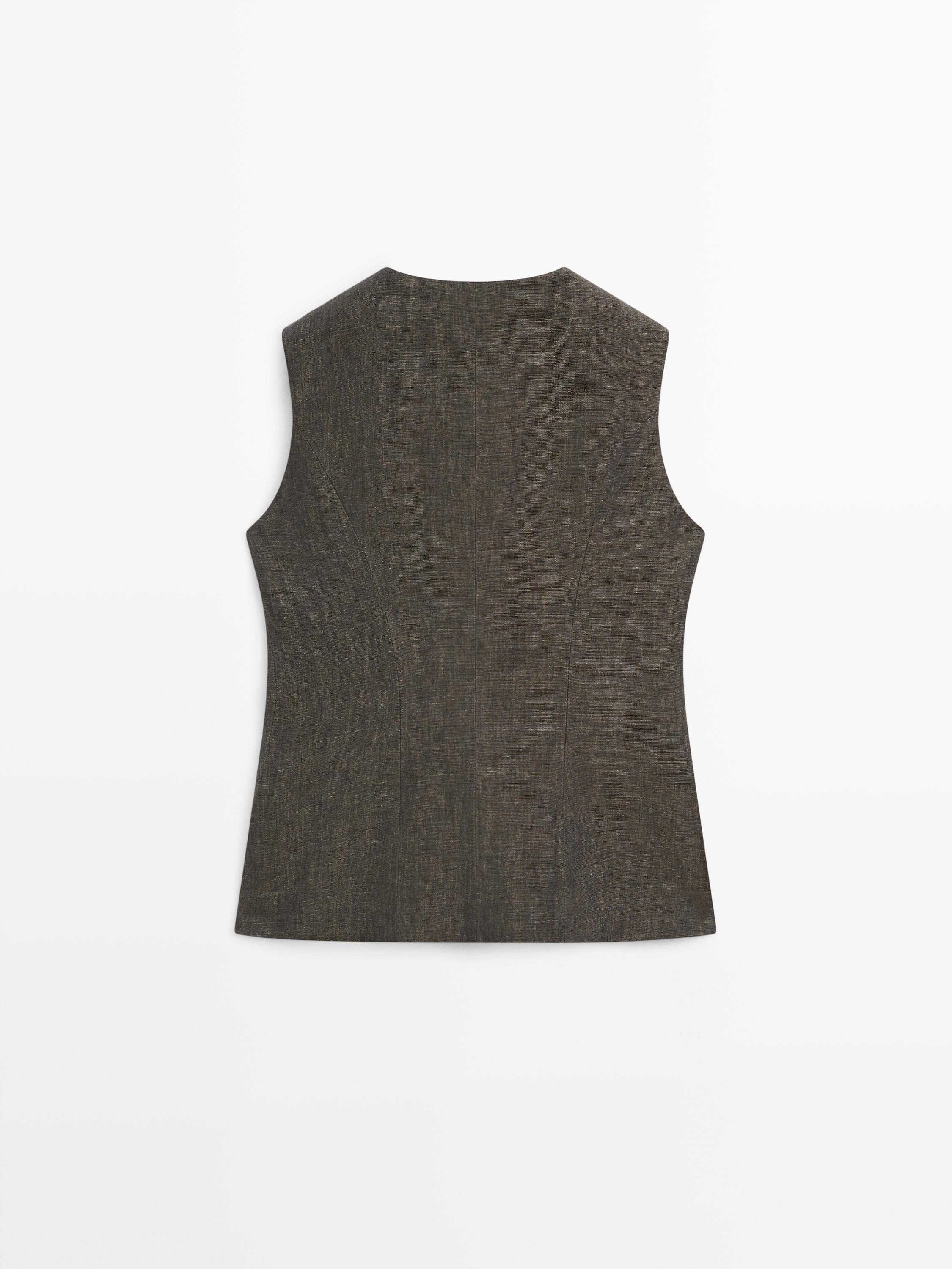 100% linen waistcoat with button detail