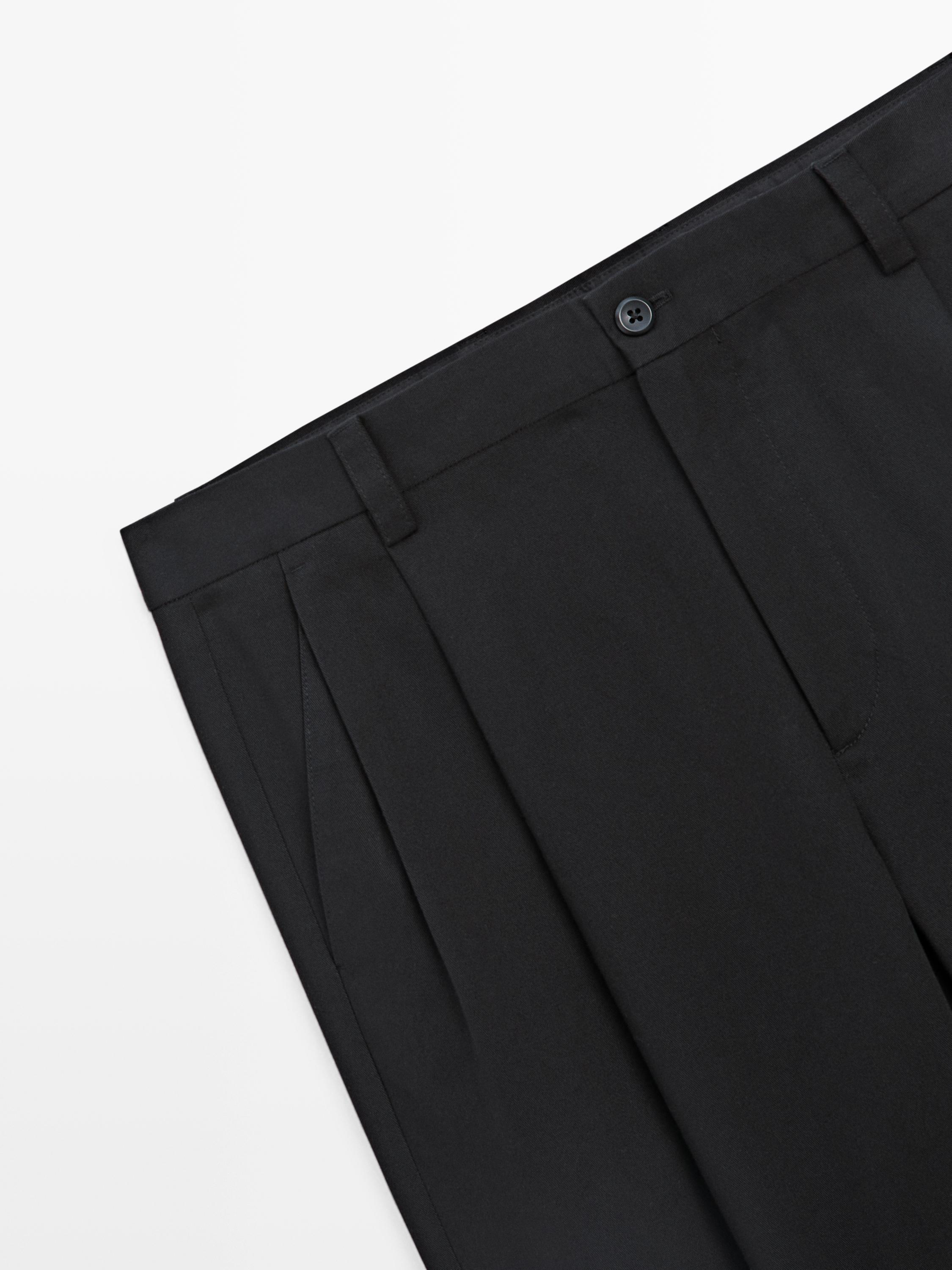 Παντελόνι με πιέτες.. Μέση με θηλάκια . Κλείσιμο με φερμουάρ και κουμπί μπροστά. Δύο τσέπες στα πλάγια. Δύο ρελιαστές τσέπες στο πίσω μέρος. Λεπτομέρεια με διπλή πιέτα μπροστά. Ιταλικό ύφασμα.