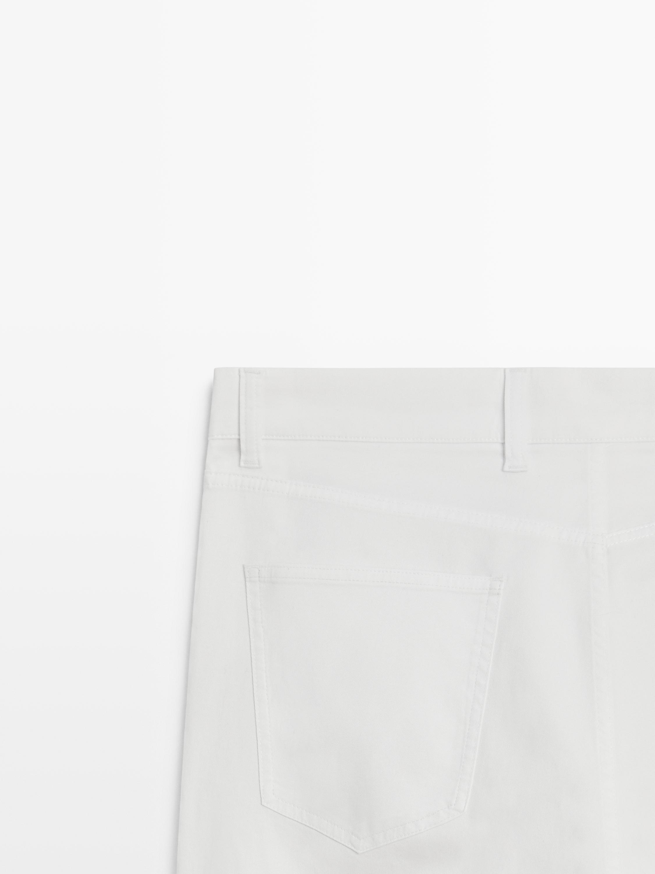 Παντελόνι Slim fit: αυτή η εφαρμογή έχει ελαφρώς εφαρμοστή γραμμή στο σώμα, στενή στη μέση και στα πόδια.. Κλείσιμο με φερμουάρ και κουμπί μπροστά. Δύο τσέπες στα πλάγια. Από σύμμεικτο βαμβακερό ύφασμα .