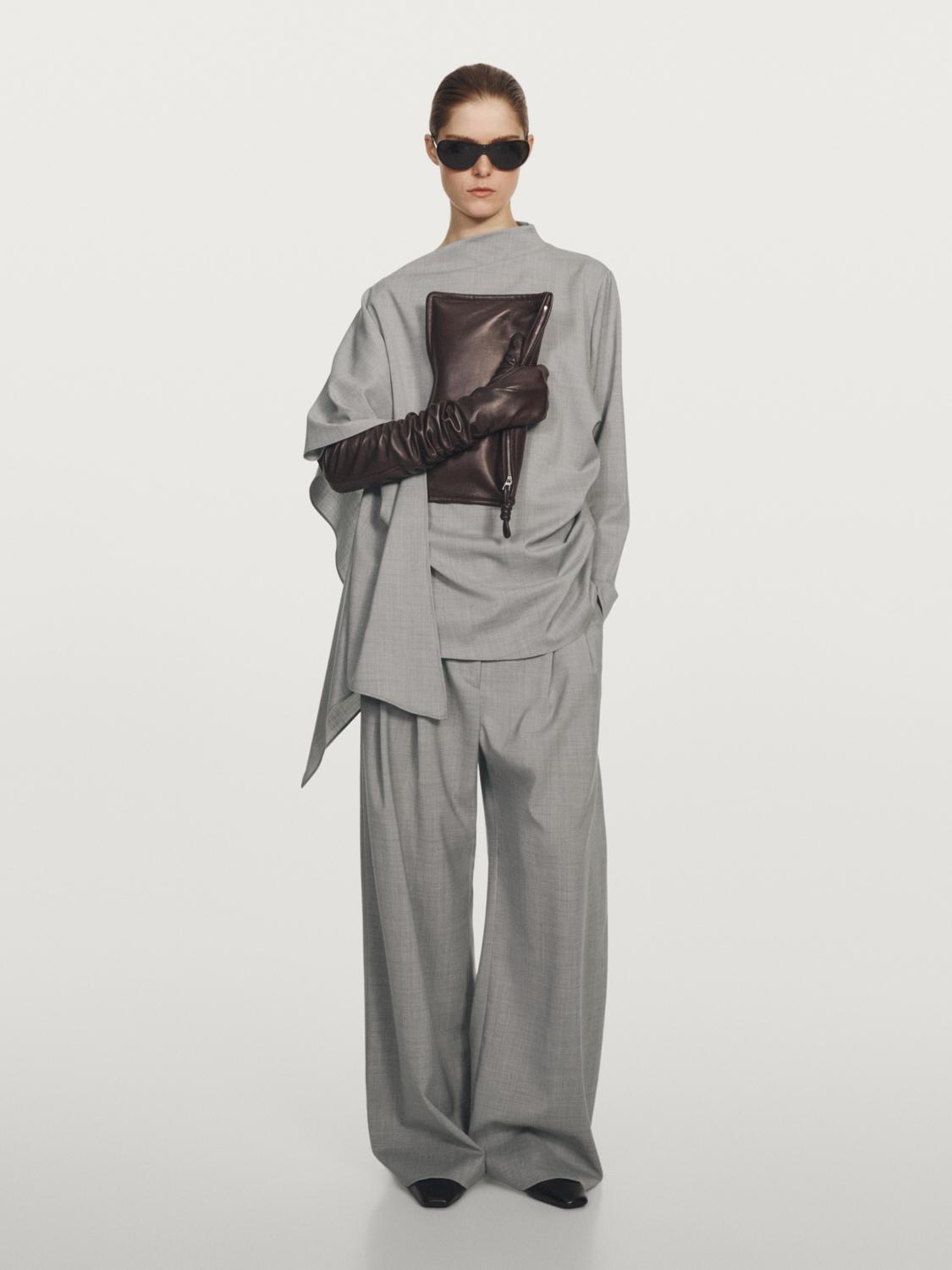 Ασύμμετρη μπλούζα με βολάν 100% μαλλί - STUDIO