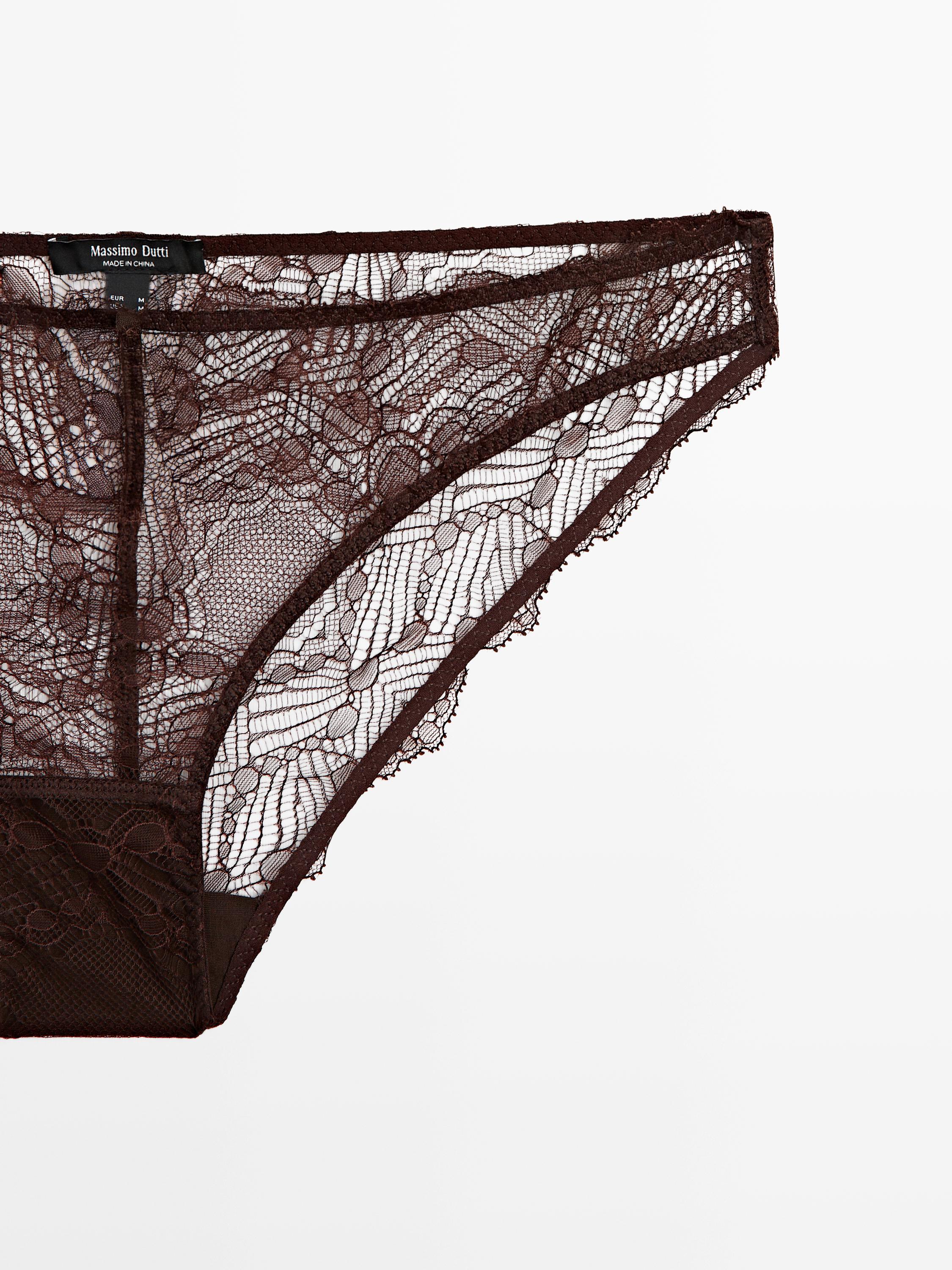 Briefs made from lace fabric . Mid-rise and elasticated waist . Inner lining in modal fabric. Semi-sheer fabric. Wavy lace finish . Matching garment available.