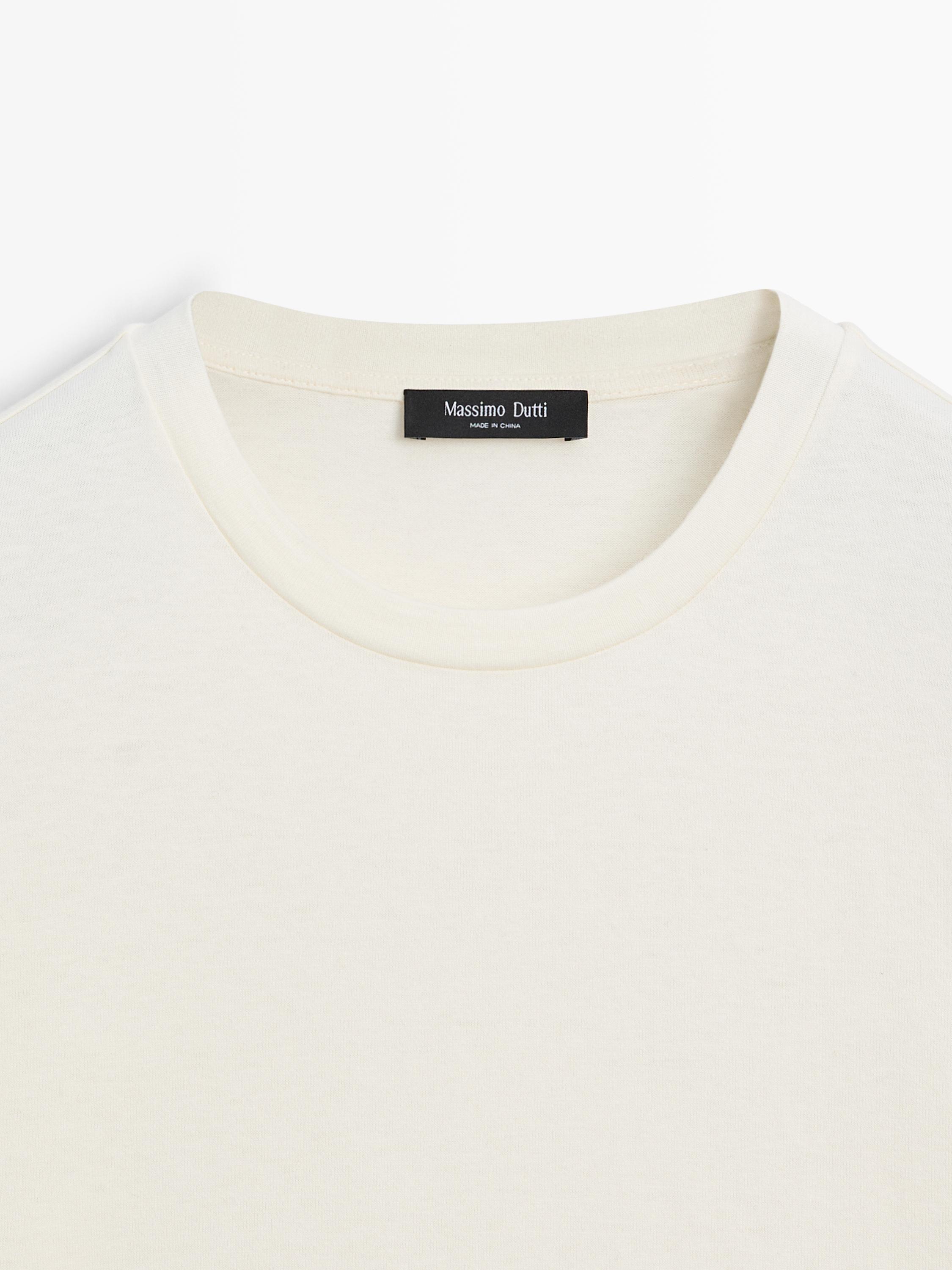 Cotton blend T-shirt. Crew neck. Long sleeves. Soft fabric that’s pleasant to the touch . Wide and relaxed silhouette, not tailored.