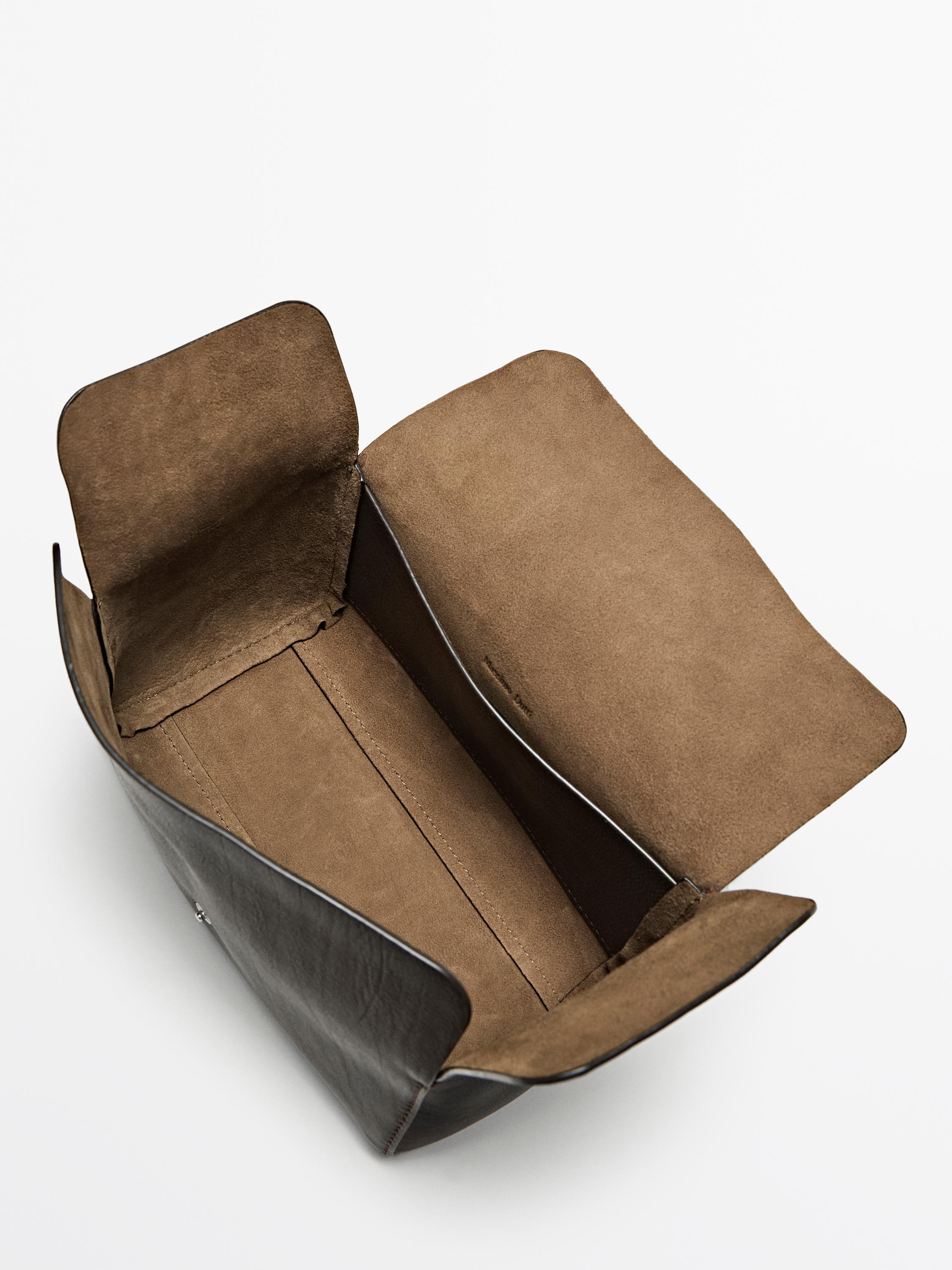 Toiletry bag made of cowhide leather with a nappa leather finish.. Concealed snap button fastening .