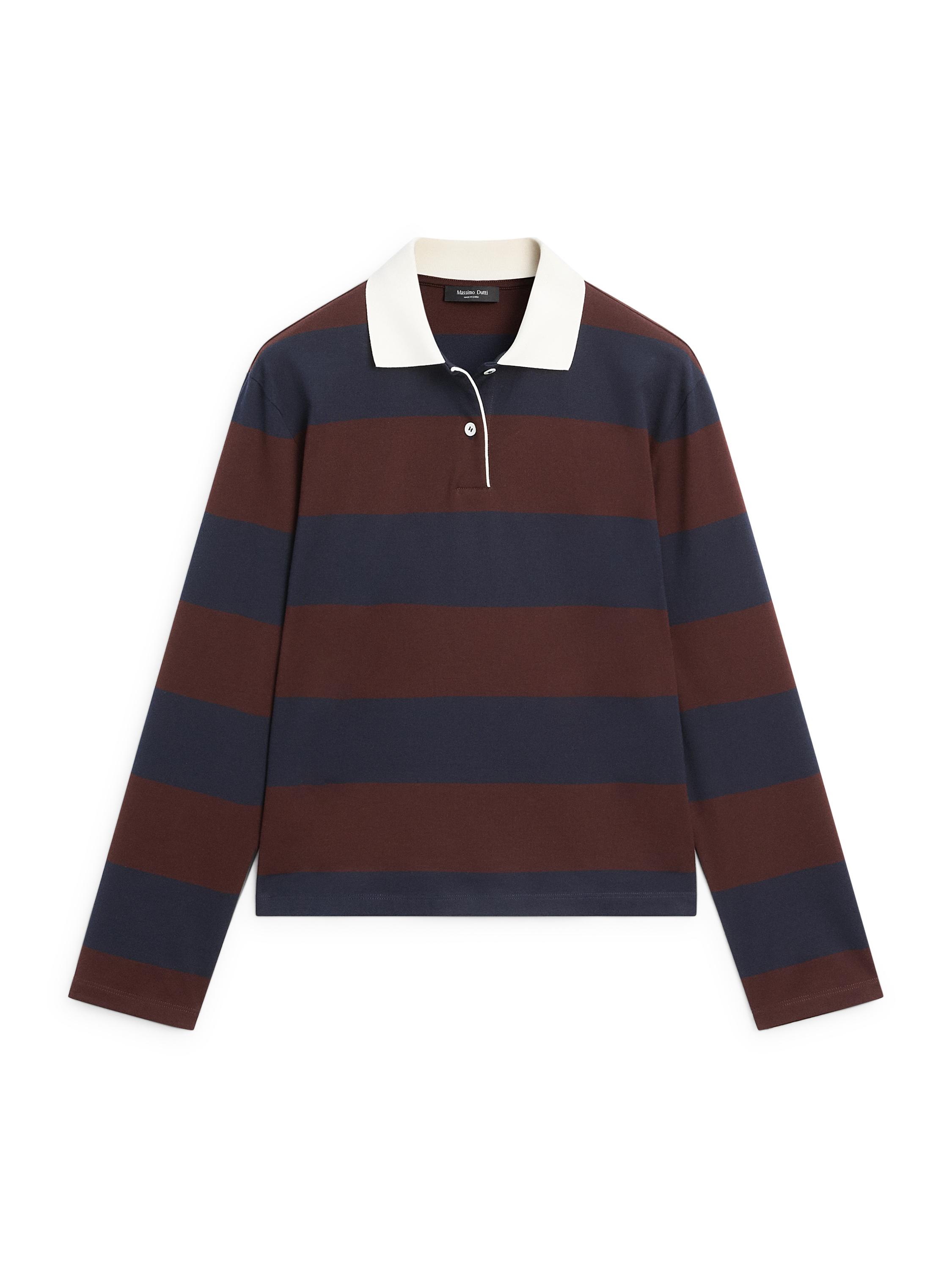 Long sleeve polo shirt . Button-down collar. Striped detail.