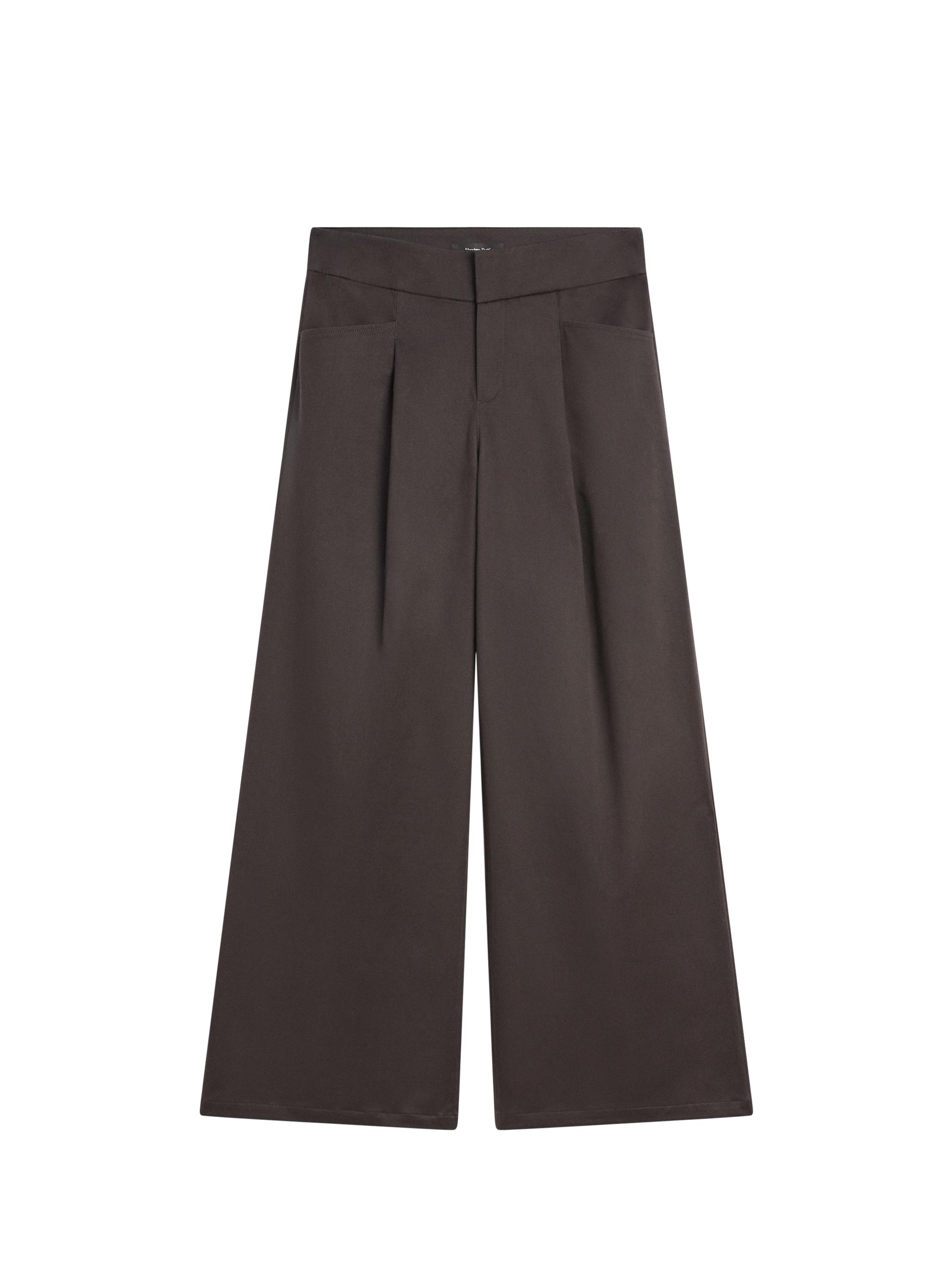 寬腿長褲:這款剪裁從臀部到腳踝的寬鬆剪裁,提供舒適度. 內側紐扣、拉鍊和鉤眼扣開合 . 正面兩個口袋 . 背面配有兩個綴扣嵌線口袋. 正面打褶設計.