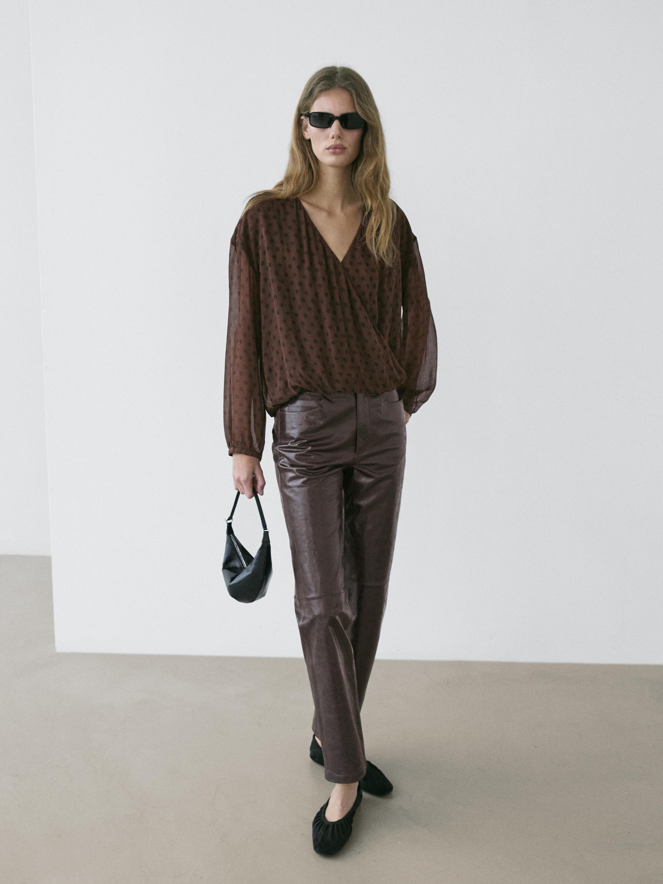Blusa fluida. Detalle drapeado. Estampado lunares. Dispone de prenda a conjunto.