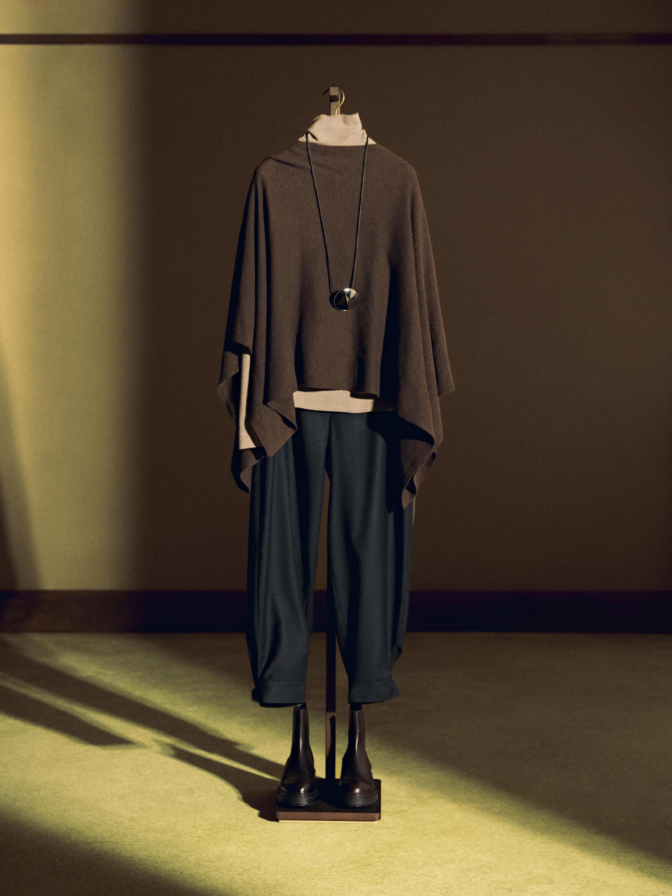 100% wool asymmetric knit cape