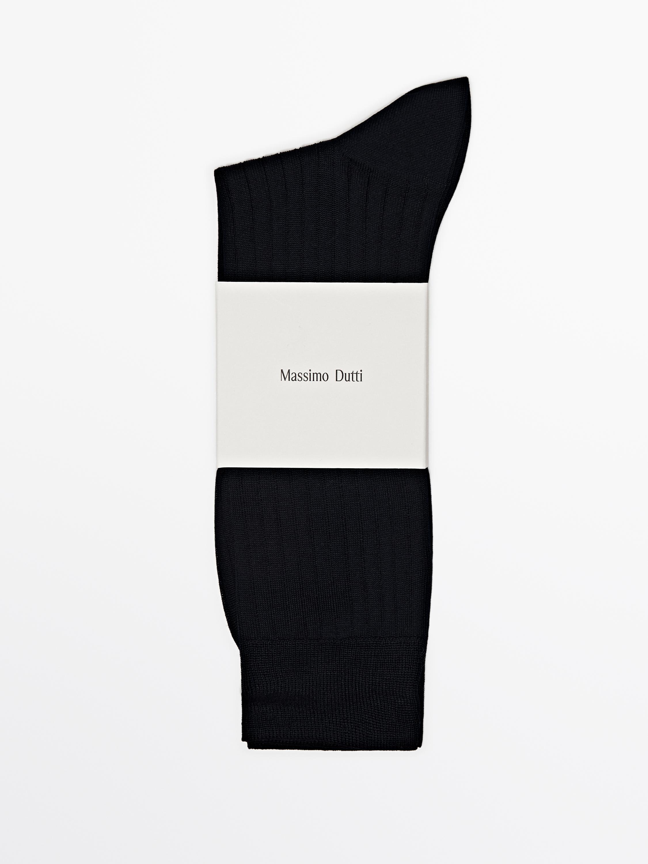 Kaus kaki yang terbuat dari bahan campuran katun. Benang Skotlandia: benang yang diperoleh setelah katun diolah secara khusus untuk mendapatkan produk yang sangat tahan dengan permukaan selembut sutra dan berkilau.. Buatan Portugal.