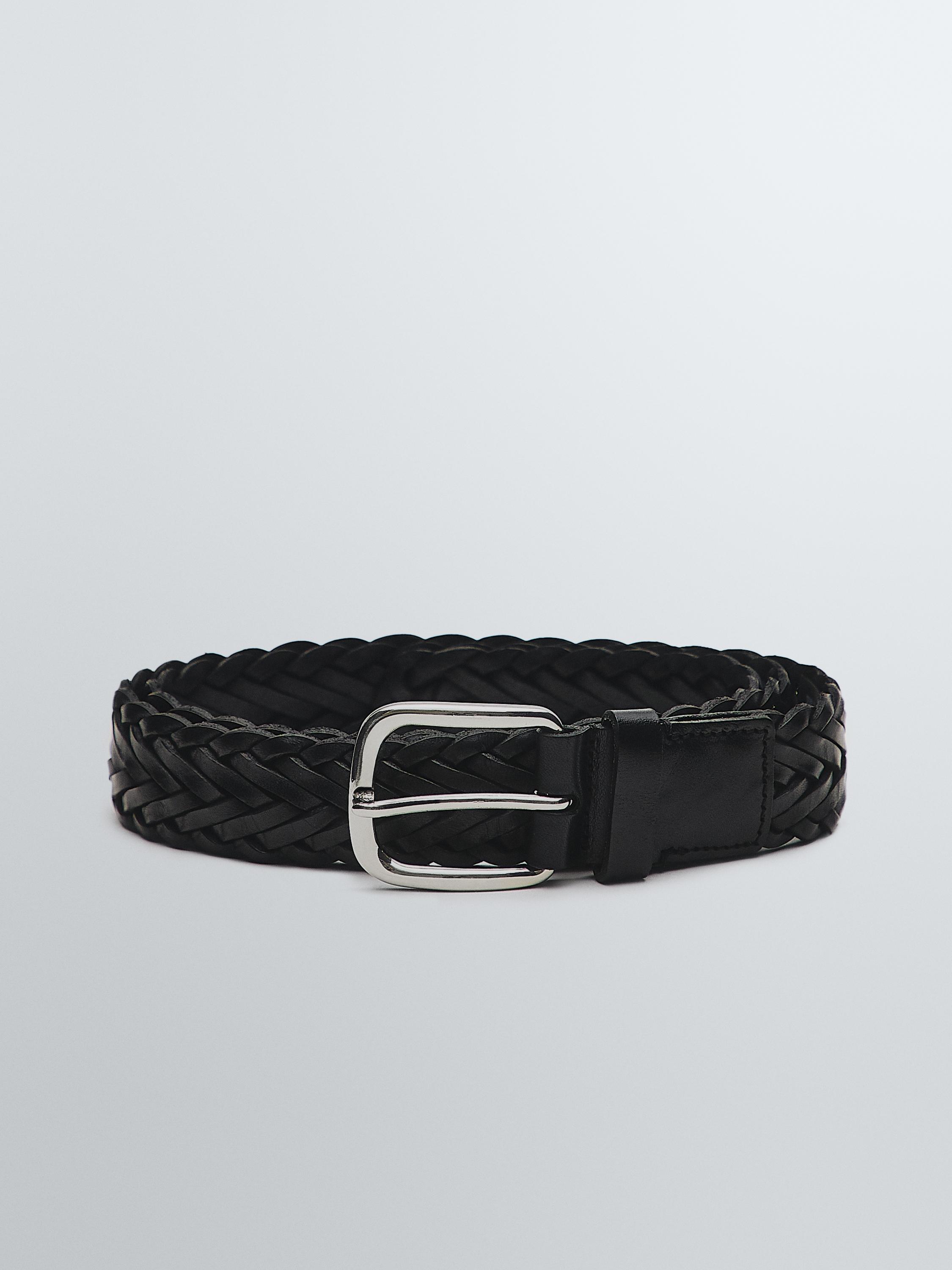 Belt made of bovine leather. Lebar 3,5 cm. Gesper logam oval besar . Detail simpul rajut kabel.