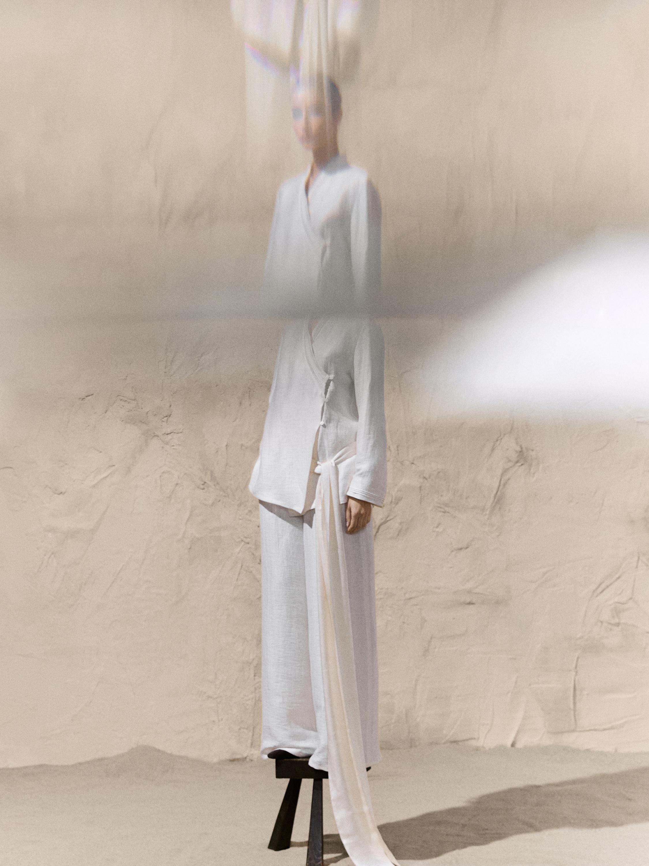 Kimono campuran linen dengan detail lapel