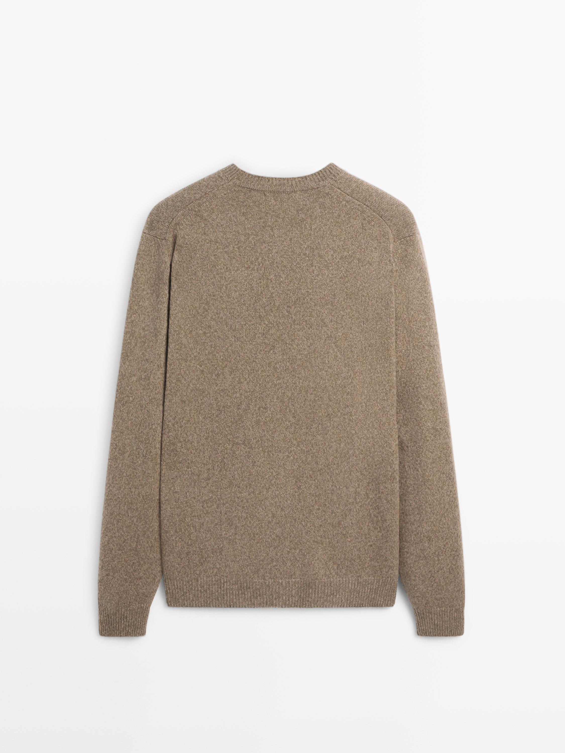 Sweter rajut yang terbuat dari bahan campuran wol . Leher bulat. Lengan panjang. Tepian ribbed . Bahan melange. Made in Italy.