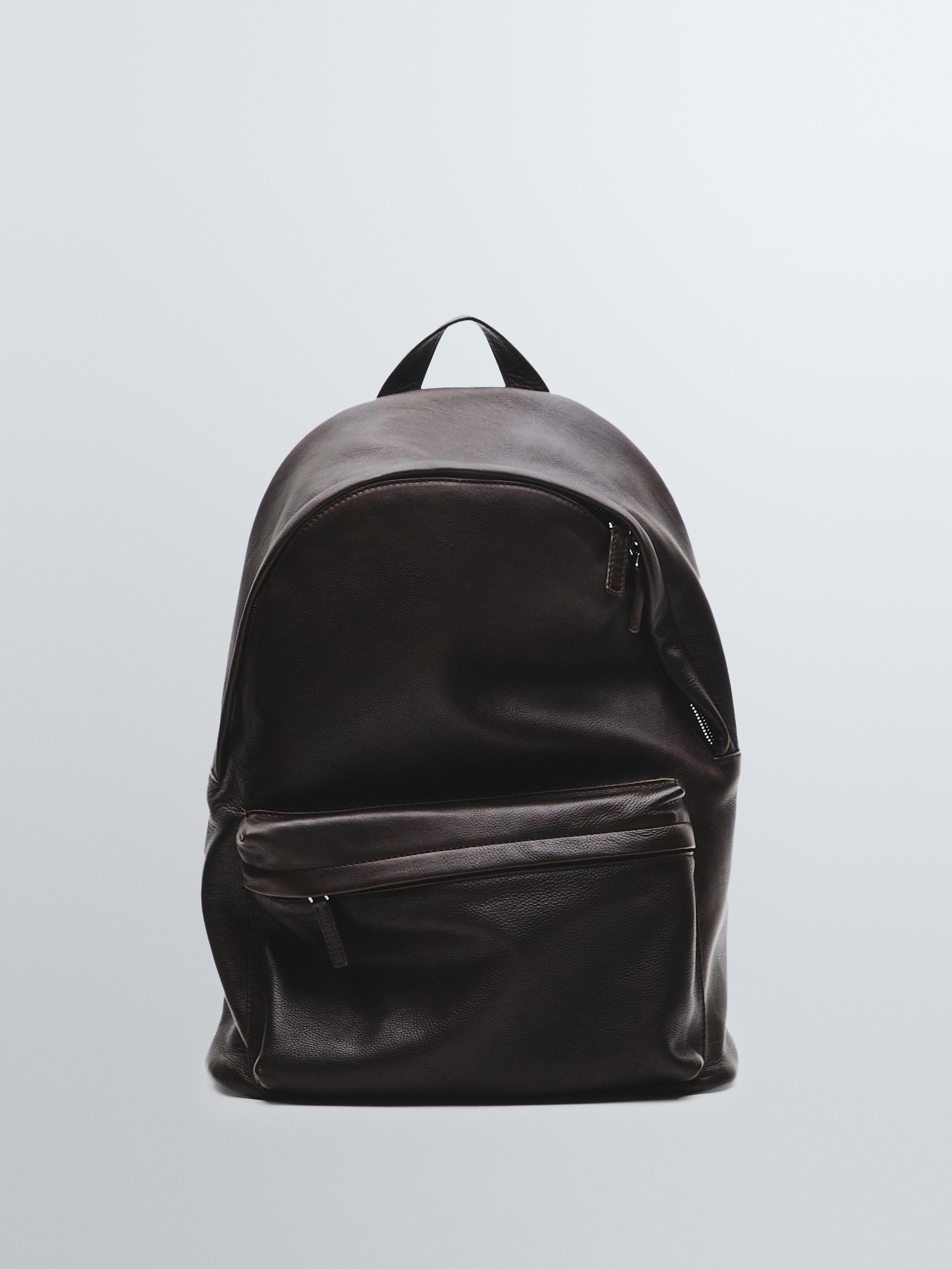Backpack made of cowhide leather with a nappa leather finish. Zip fastening. Handle. Features one main compartment and an interior zip-up pocket.. Cotton lining.