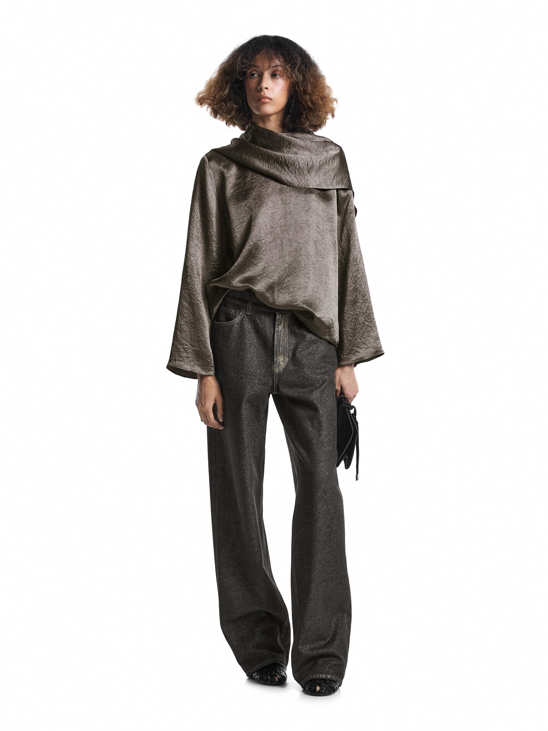 Straight-leg jeans: straight silhouette from the waist to ankle, with no additional leg adjustments. High-rise. Metallic gold finish. Front zip and top button fastening. Five-pocket design.
