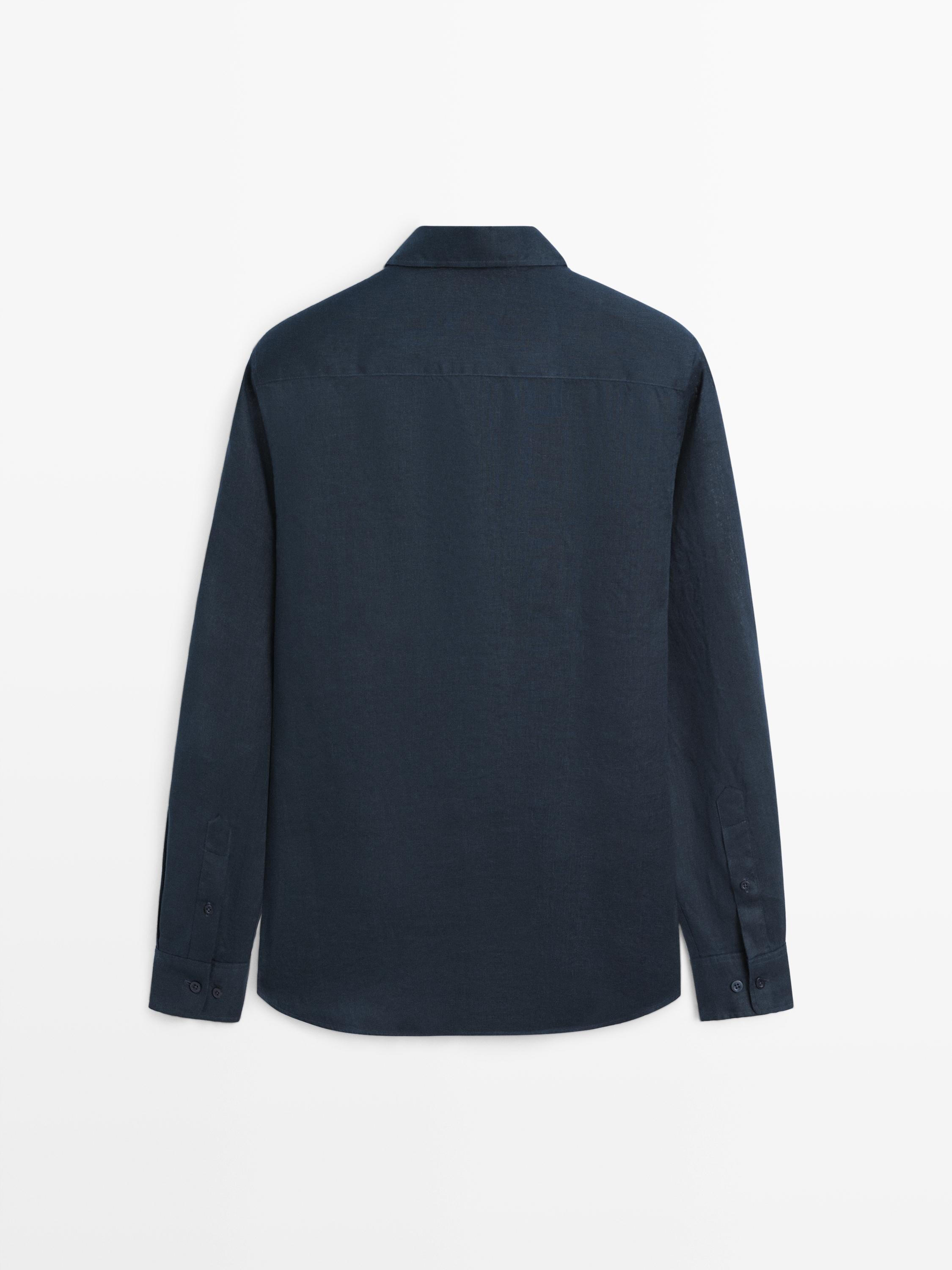 Camicia realizzata in tessuto 100% lino. Maniche lunghe con polsino abbottonato. Colletto stile camicia. Taglio regular fit: questa vestibilità offre comfort con un busto un po’ più ampio. Chiusura con abbottonatura anteriore.