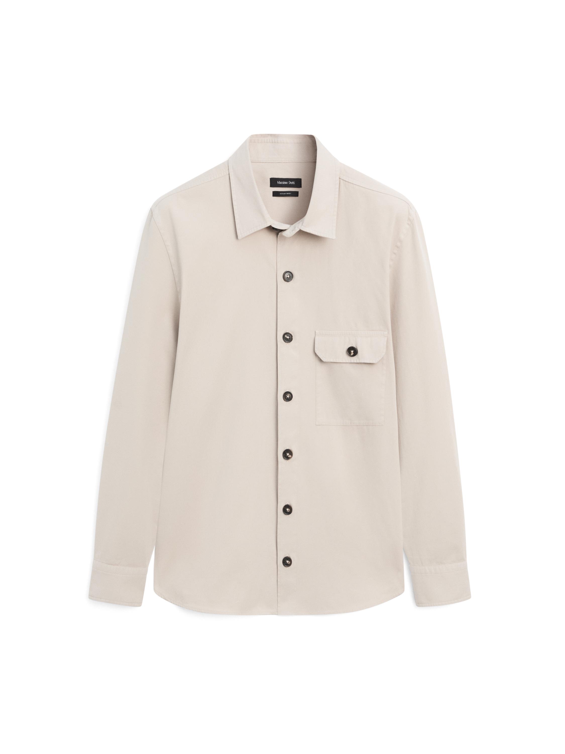 Giacca camicia realizzata in tessuto 100% cotone. Maniche lunghe con polsino abbottonato. Colletto stile camicia. Chiusura con abbottonatura anteriore. Due tasche a toppa con patta abbottonata.