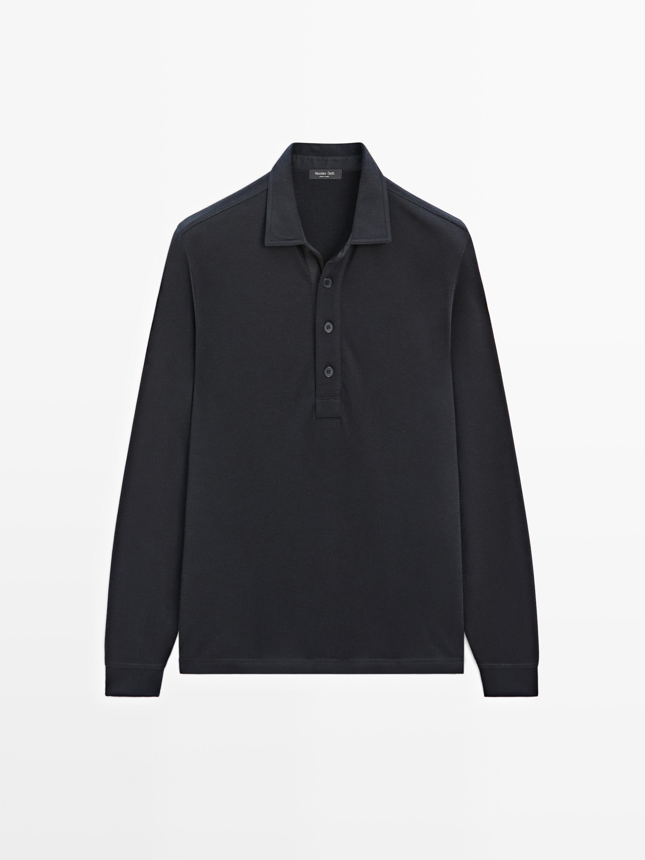 Polo a maniche lunghe . Colletto abbottonato. Orlo con spacchi laterali.