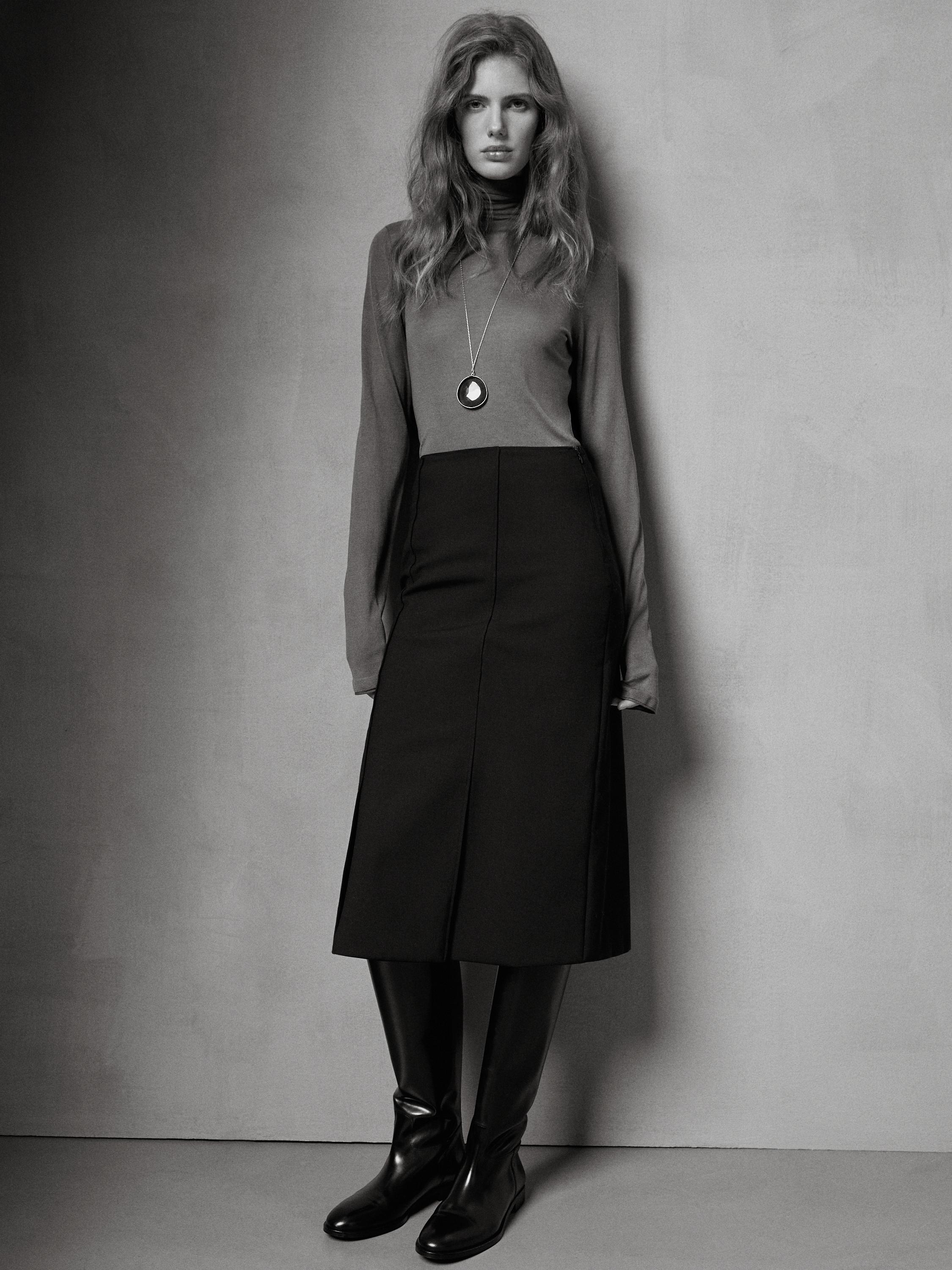 Gonna midi dritta con spacco in misto lana