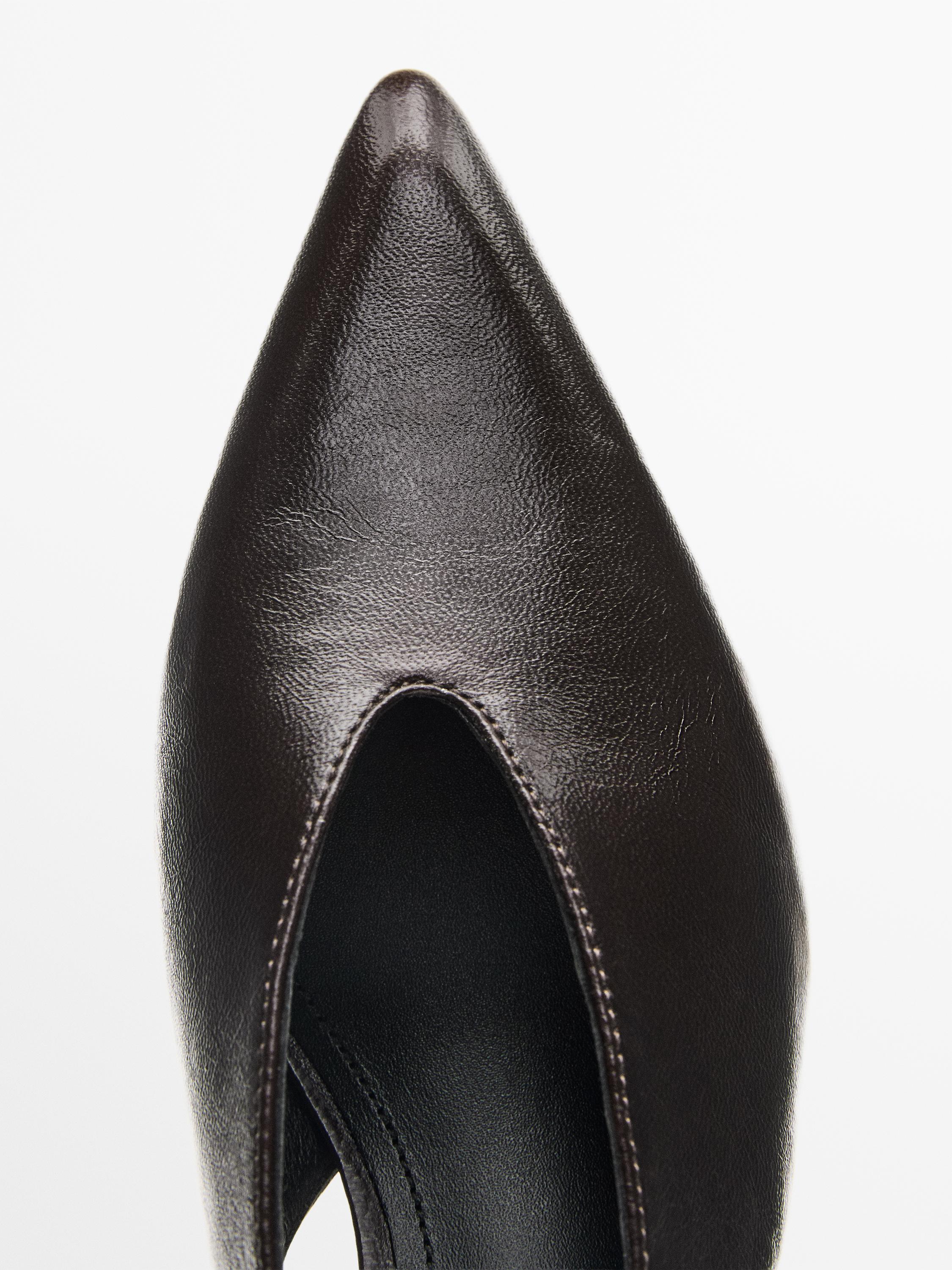 حقيبة مصنوعة من جلد الغنم بمظهر متشقق. إغلاق بمشبك قابل للتعديل . نعل داخلي وبطانة داخلية من الجلد . حزام خلفي مزدوج. كعب: 3سم.