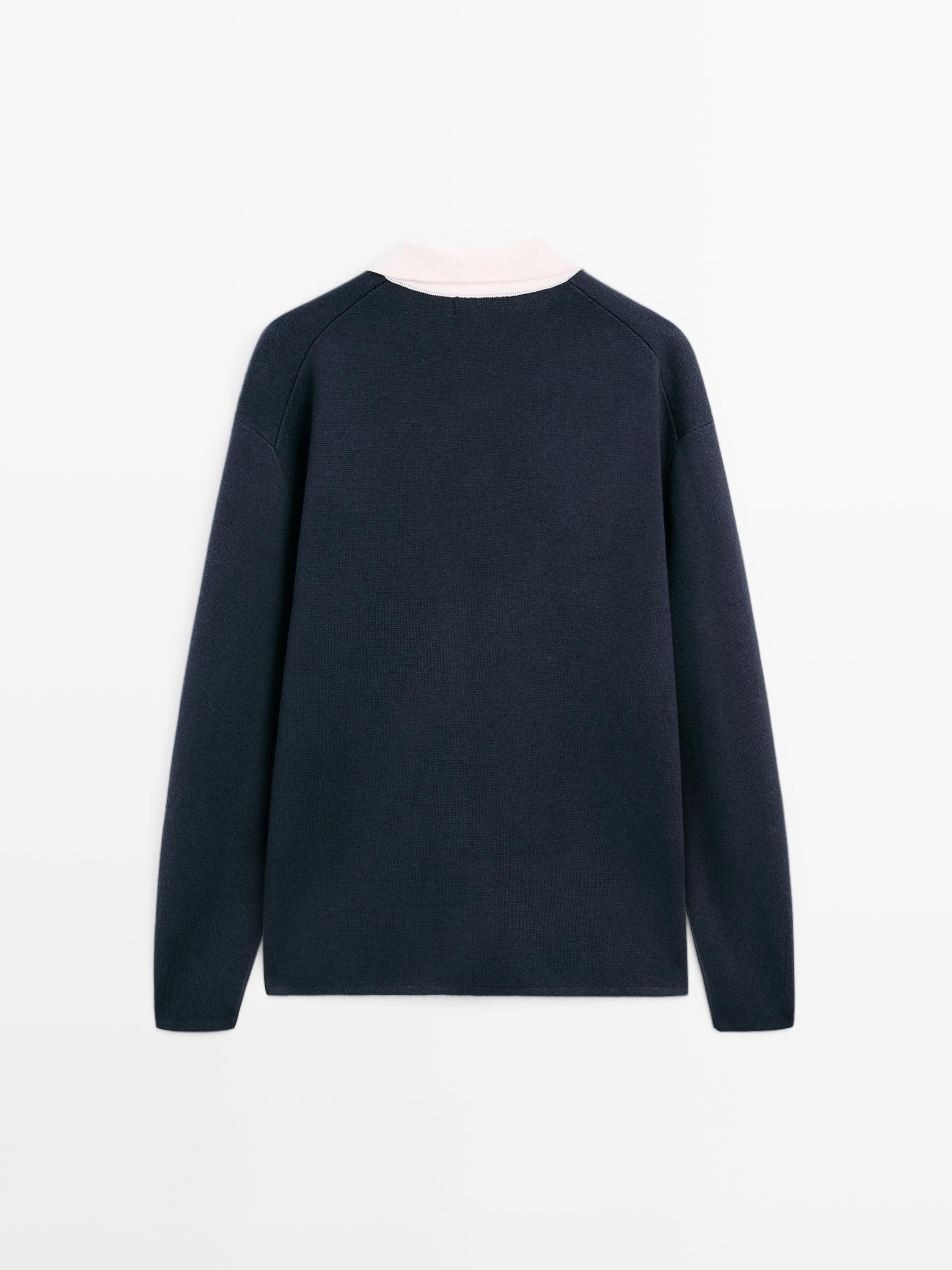 조니 칼라. 긴소매. 콘트라스트 칼라 디테일.