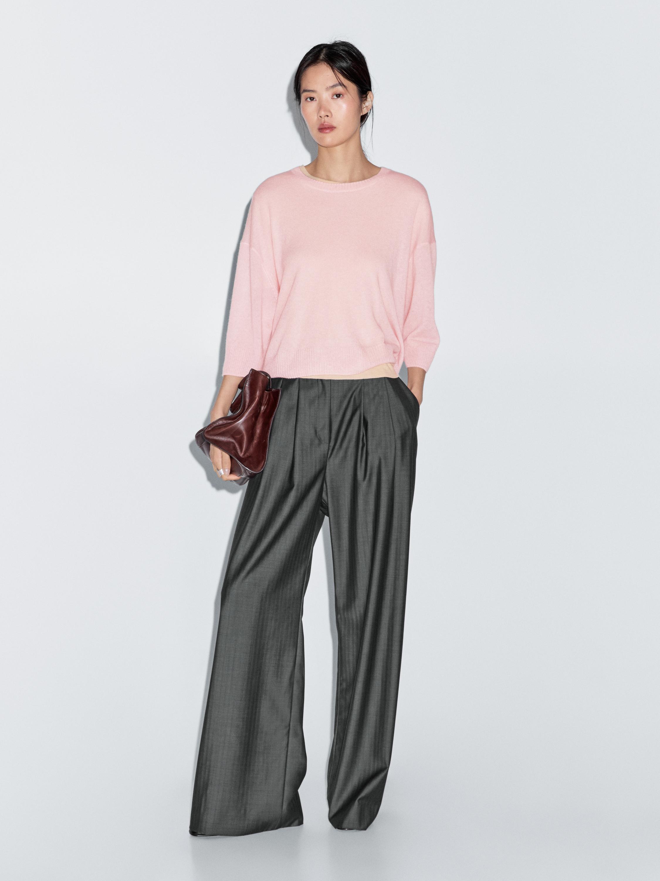 울 블렌드 니트 스웨터. 크루넥. 7부 소매. 리브드 트리밍 . 쾌적한 촉감의 부드러운 패브릭 . 테일러드되지 않은 넓고 편안한 실루엣.