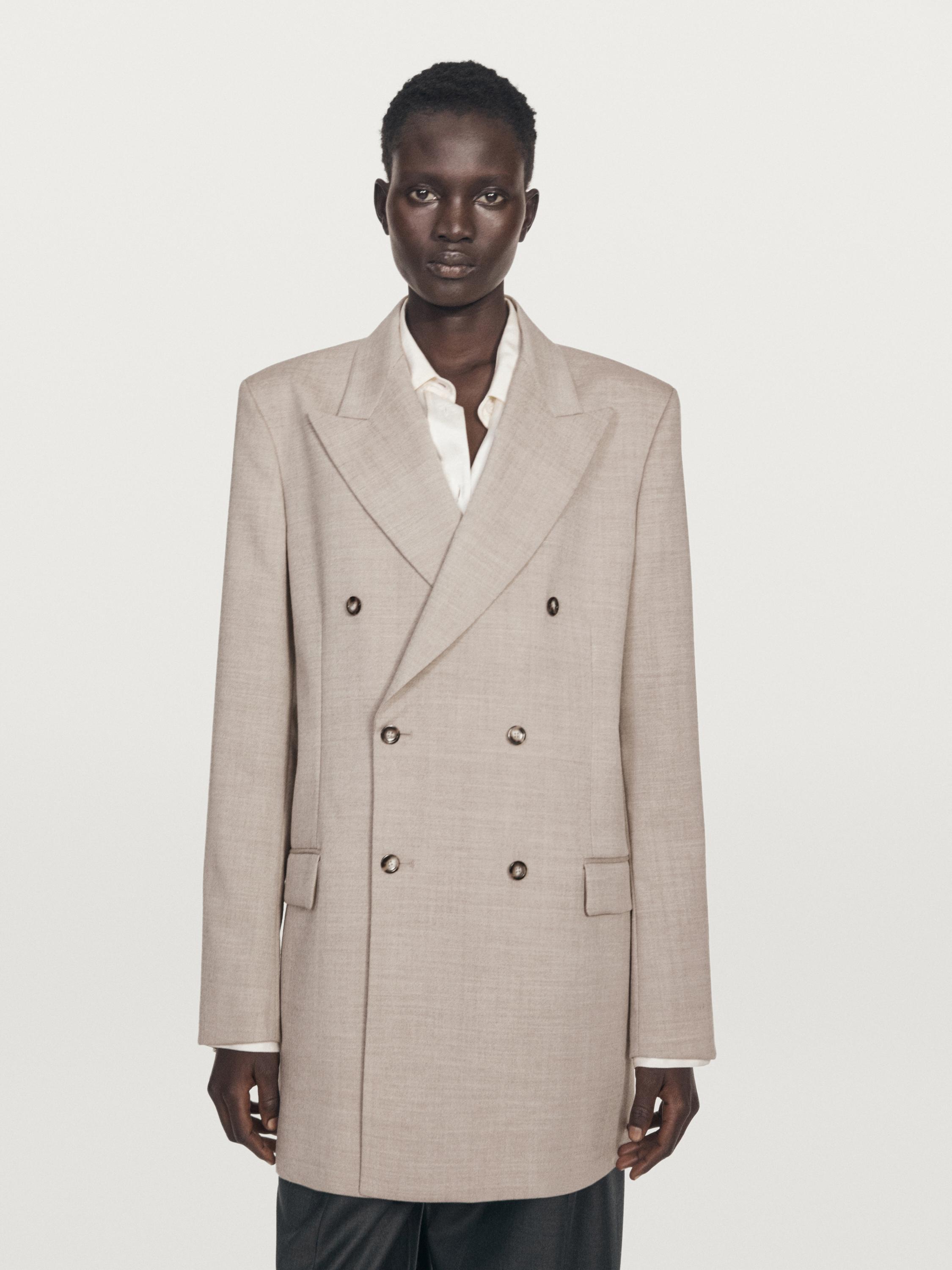 Veste en 100 % laine.. Col à revers en pique. Manches longues avec poignets boutonnés. Fermeture croisée par un double boutonnage sur le devant. Deux poches à rabat. Split au milieu du dos. Doublure intérieure.