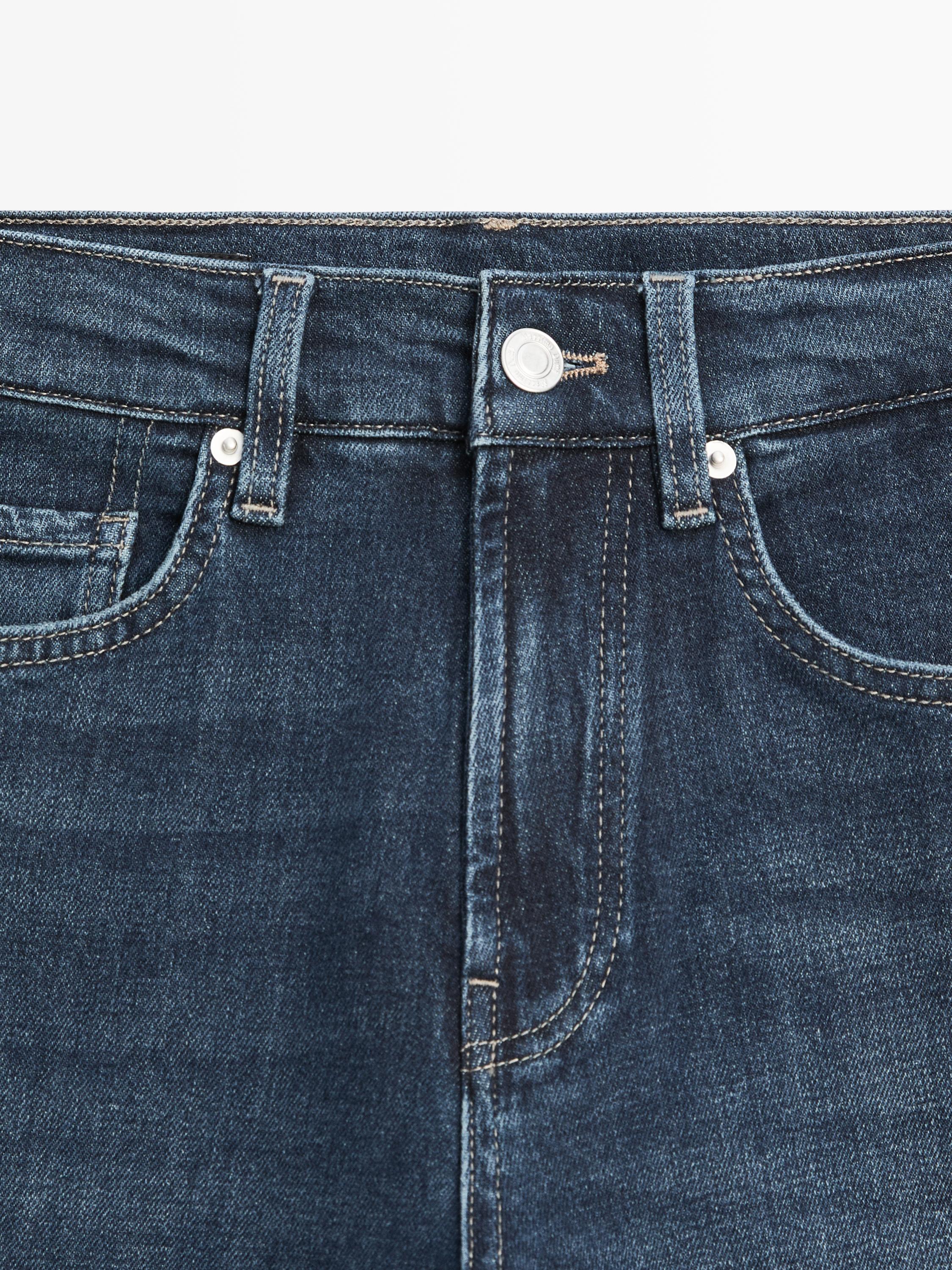 Jean straight : cette coupe présente une silhouette droite de la taille aux chevilles, sans resserrement supplémentaire aux jambes.. Fermeture Éclair et bouton sur le devant. Modèle à cinq poches.