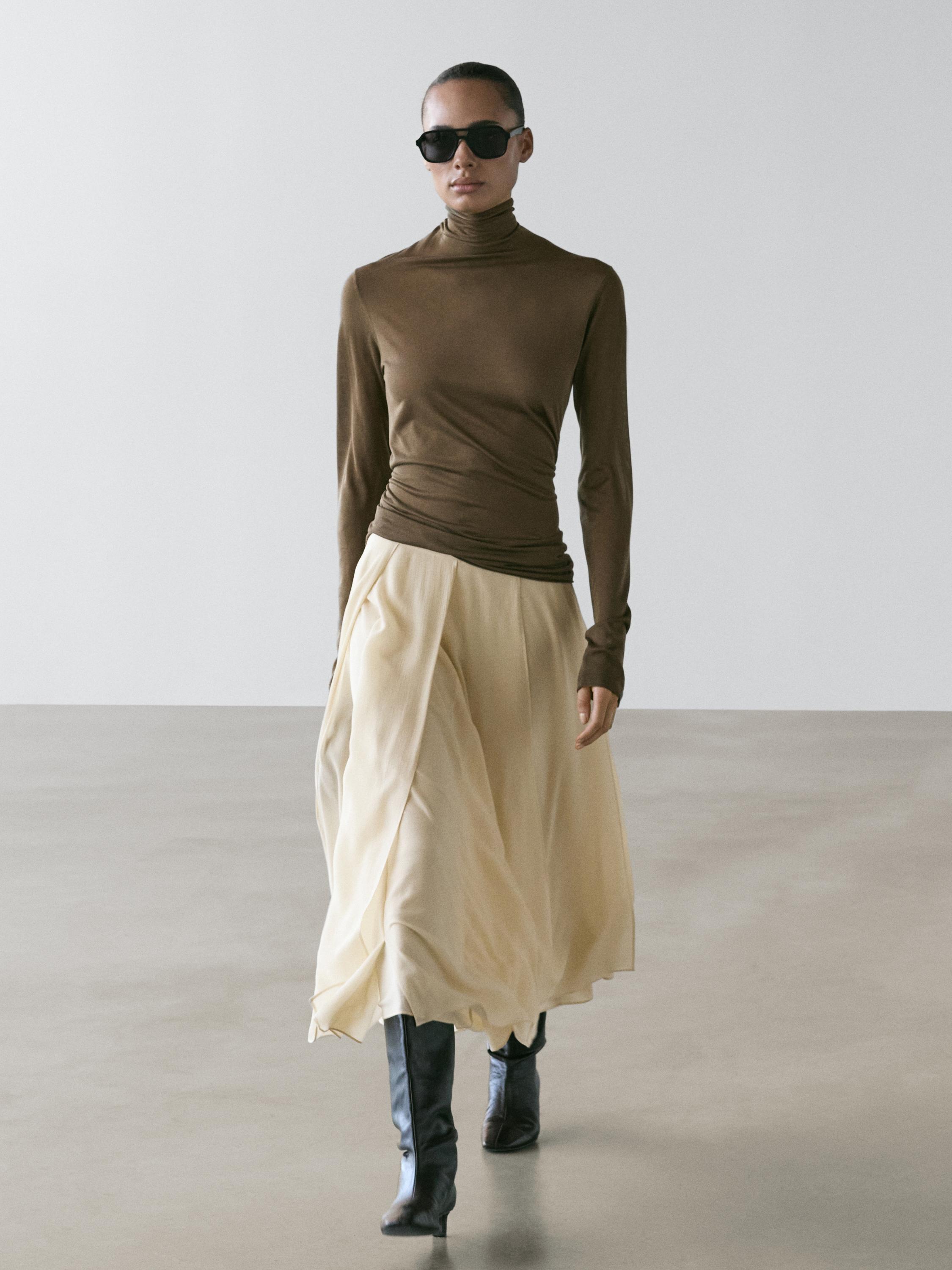 Jupe midi fluide à volants