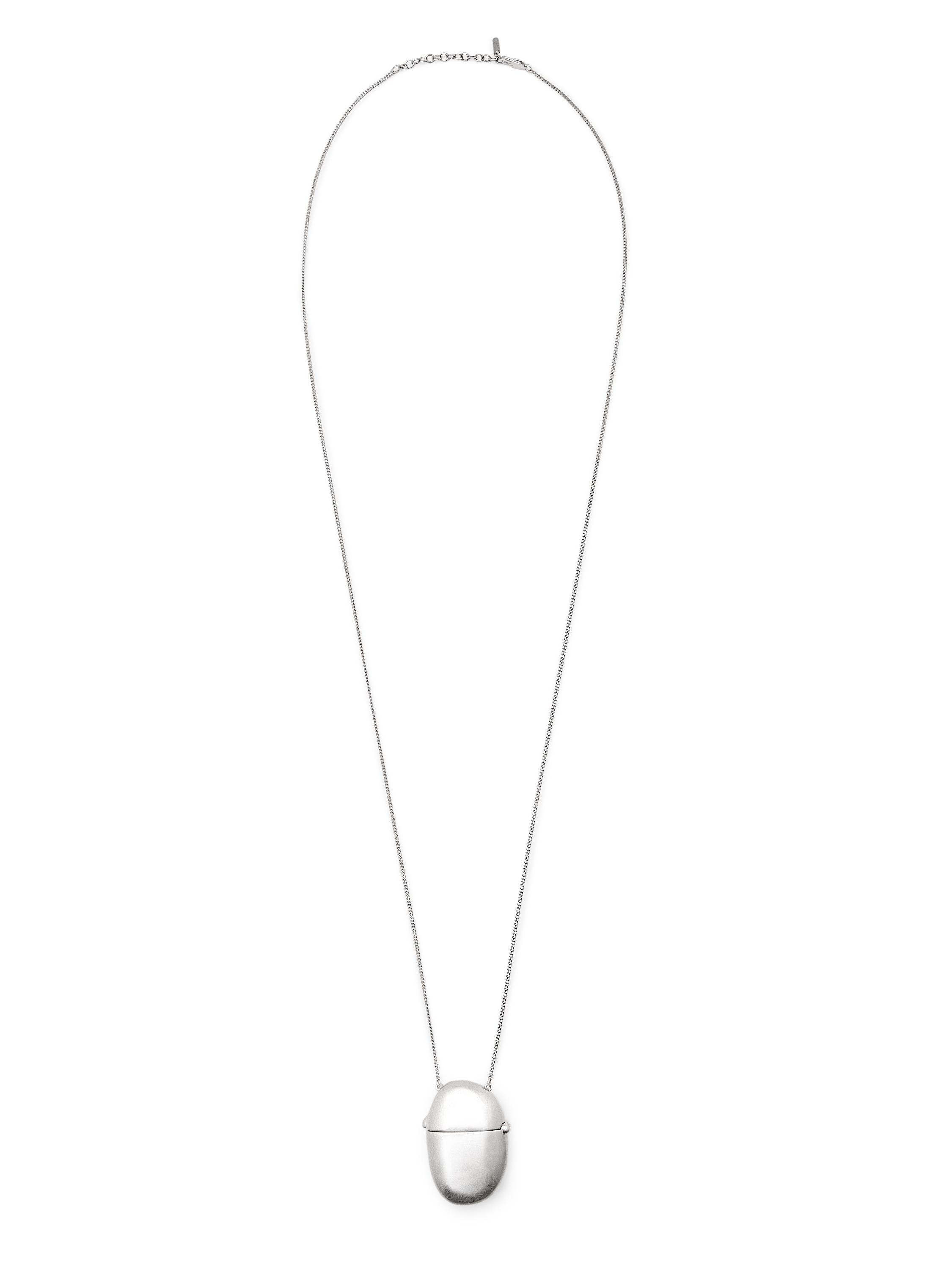 Collier chaîne. Pendentif en métal type boîte de forme ovale . Fermoir mousqueton.