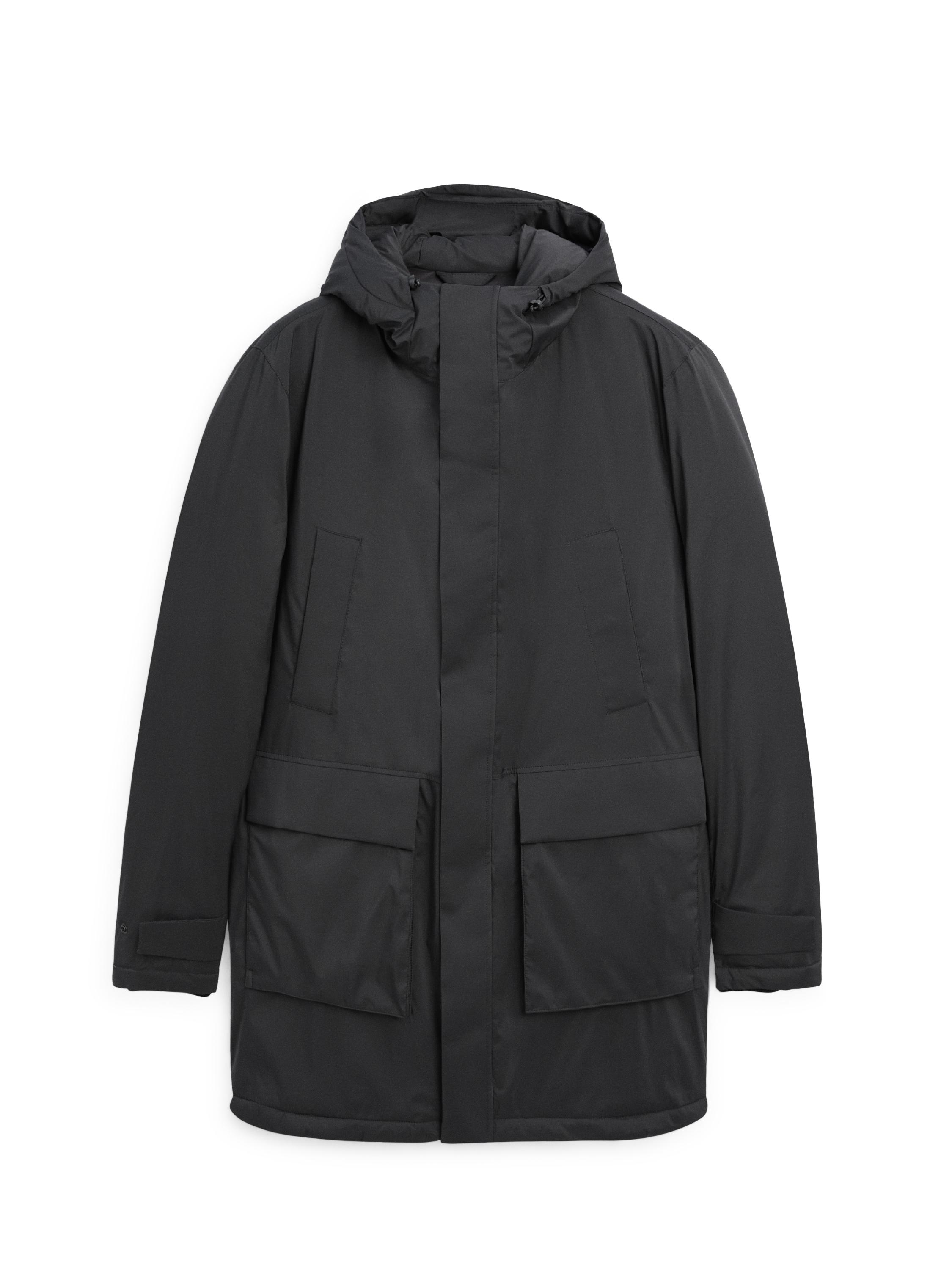 Long quilted parka with down and feather blend. Long sleeves with double cuffs and tab with snap button fastening . Adjustable hood. Adjustable elastic waistband. Two-way zip fastening concealed by a placket with snap buttons. Two side pockets. Two flap pockets. Inner pocket with zip. Detail: Quick and easy locking mechanism, designed to provide greater comfort.
