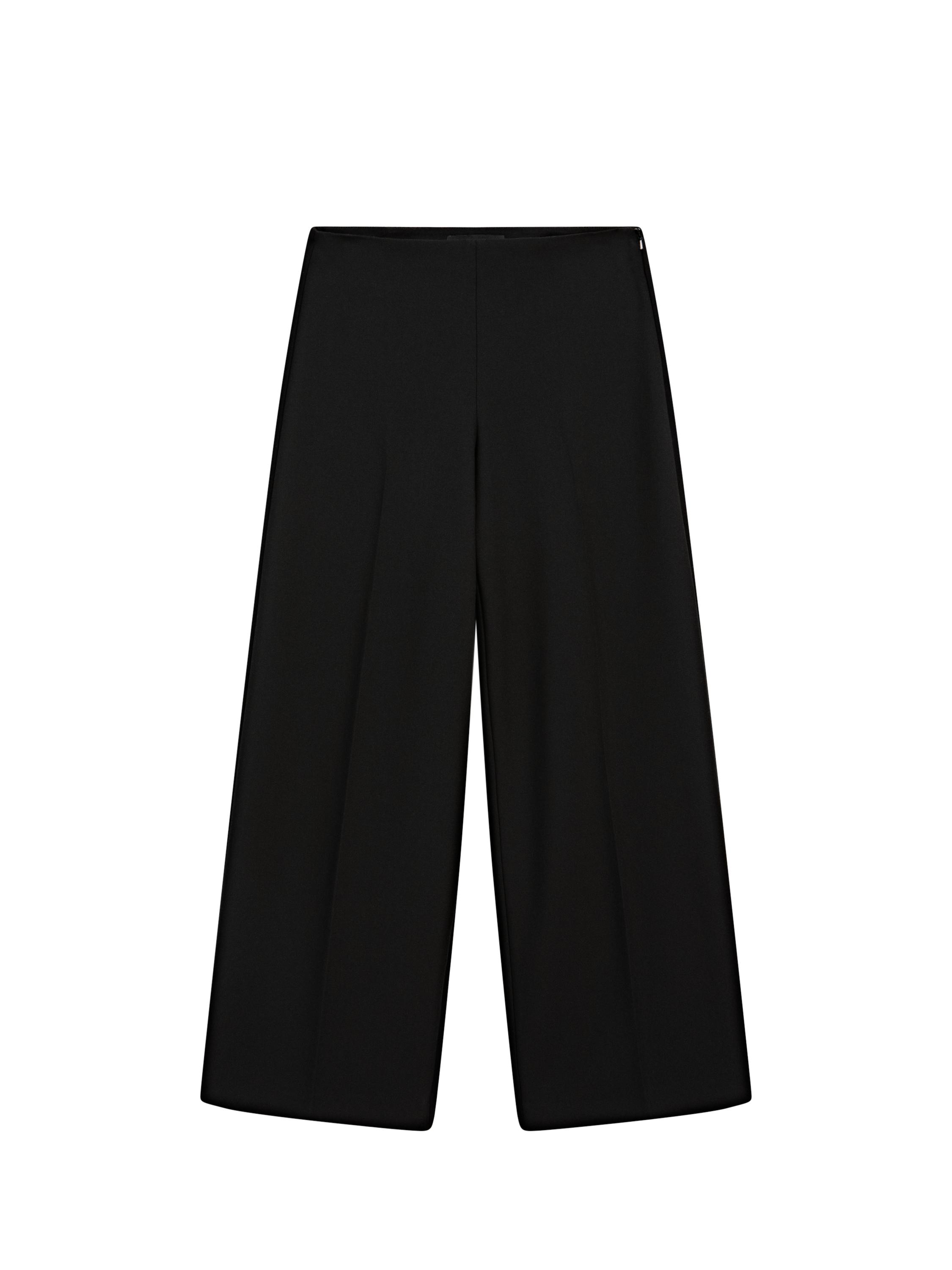 Wide-leg trousers: this cut features a wide and loose fit from hip to ankle, providing comfort. Darted trousers. Side zip fastening. Two flap pockets at the back.