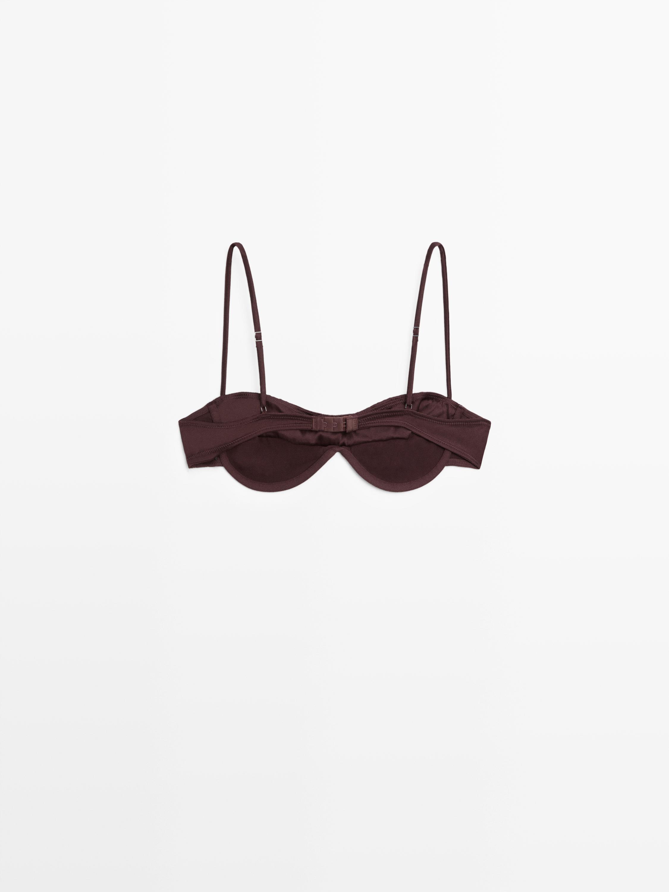 Creased-effect bandeau top with pleated detail. Tirantes ajustables. Cierre en espalda con ganchos metálicos. Detalle de costuras. Dispone de prenda a conjunto.