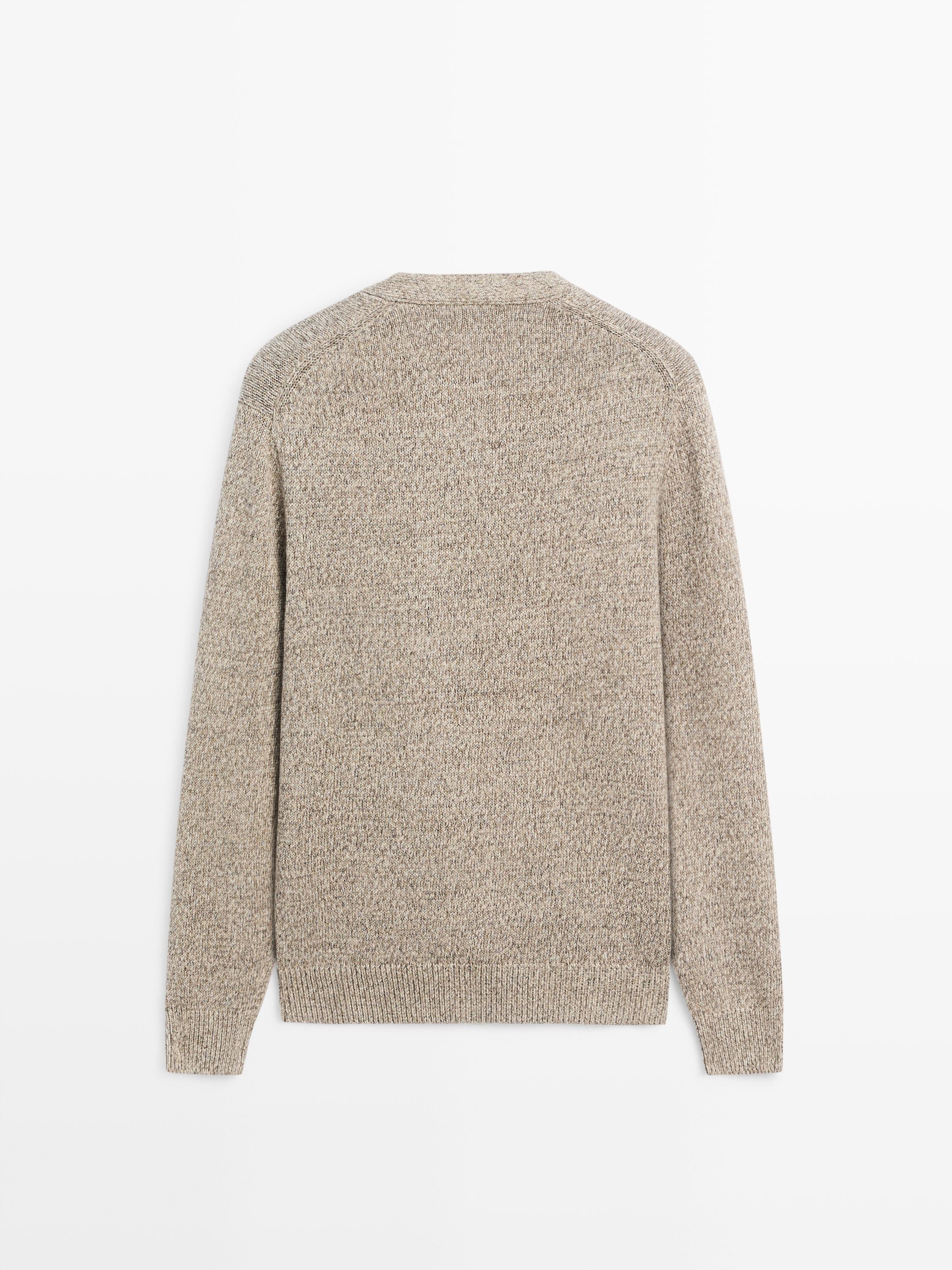 Cárdigan confeccionado en tejido de punto algodón. Cuello pico. Manga larga. Cierre mediante botonadura frontal. Acabados en rib .