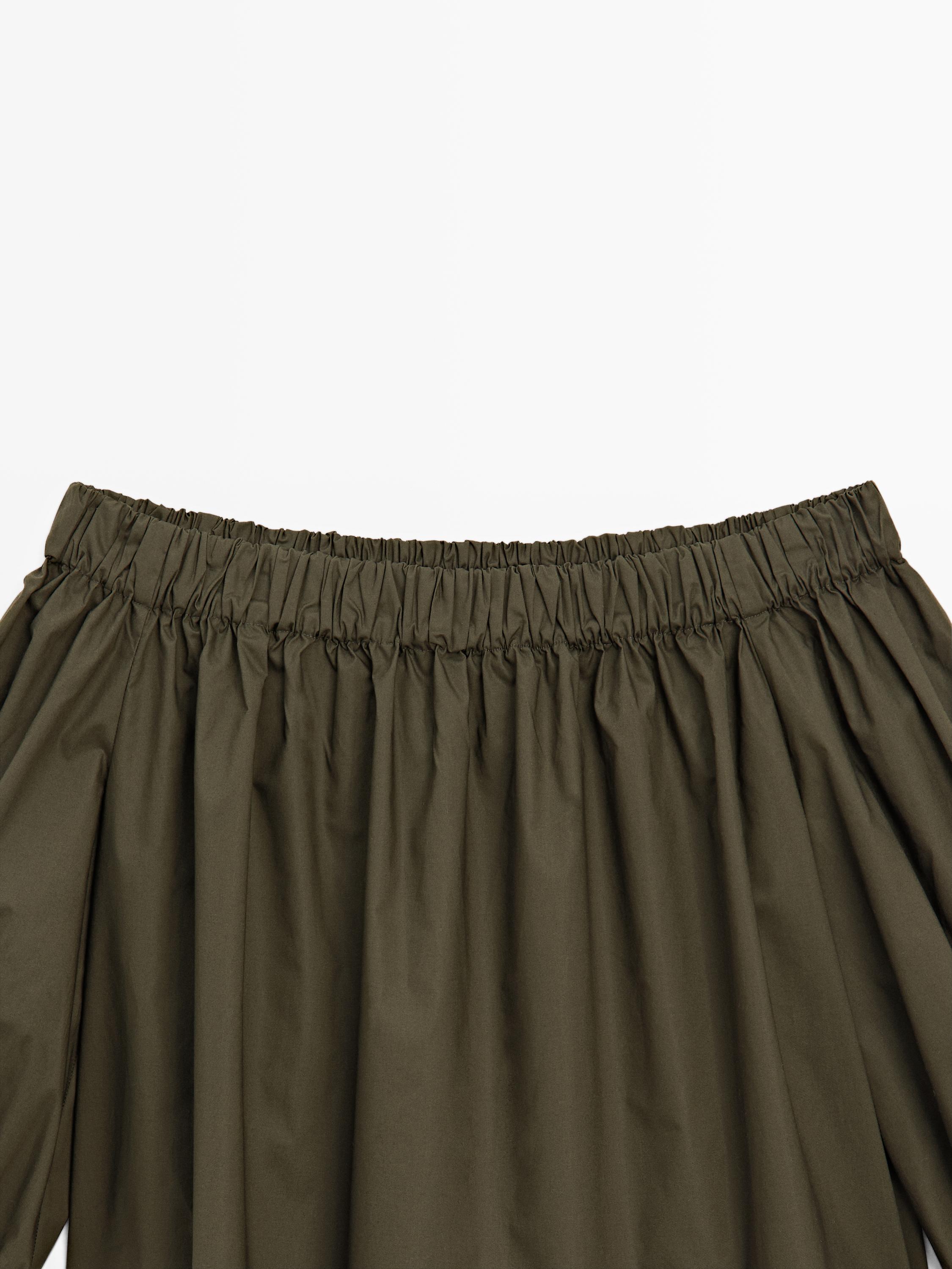 Top confeccionado en tejido 100% algodón. Manga ranglán. Elastic collar. Escote barco . Elasticated rubber detail on the cuffs. Dispone de prenda a conjunto.