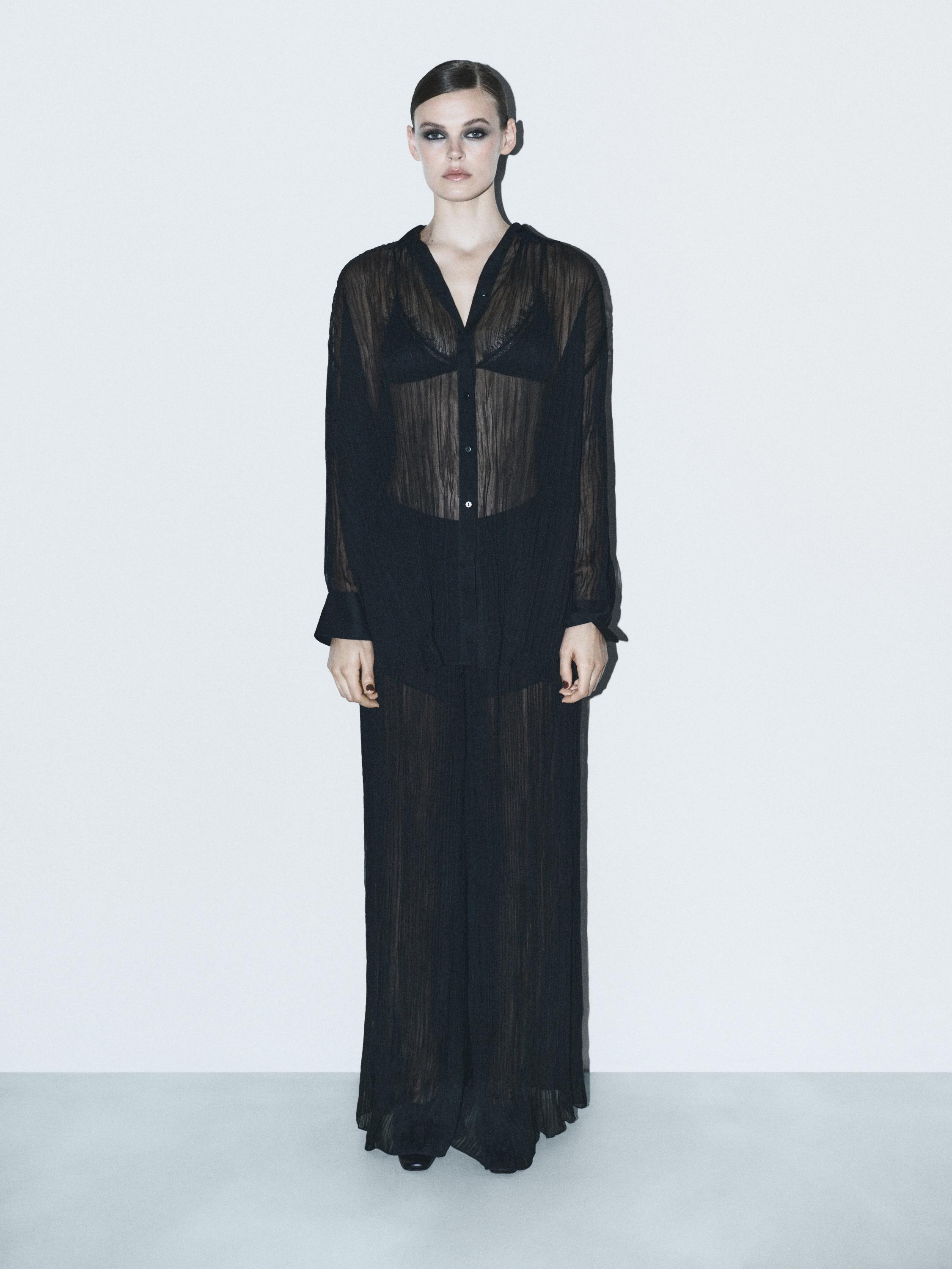 Camisa holgada larga plisada
