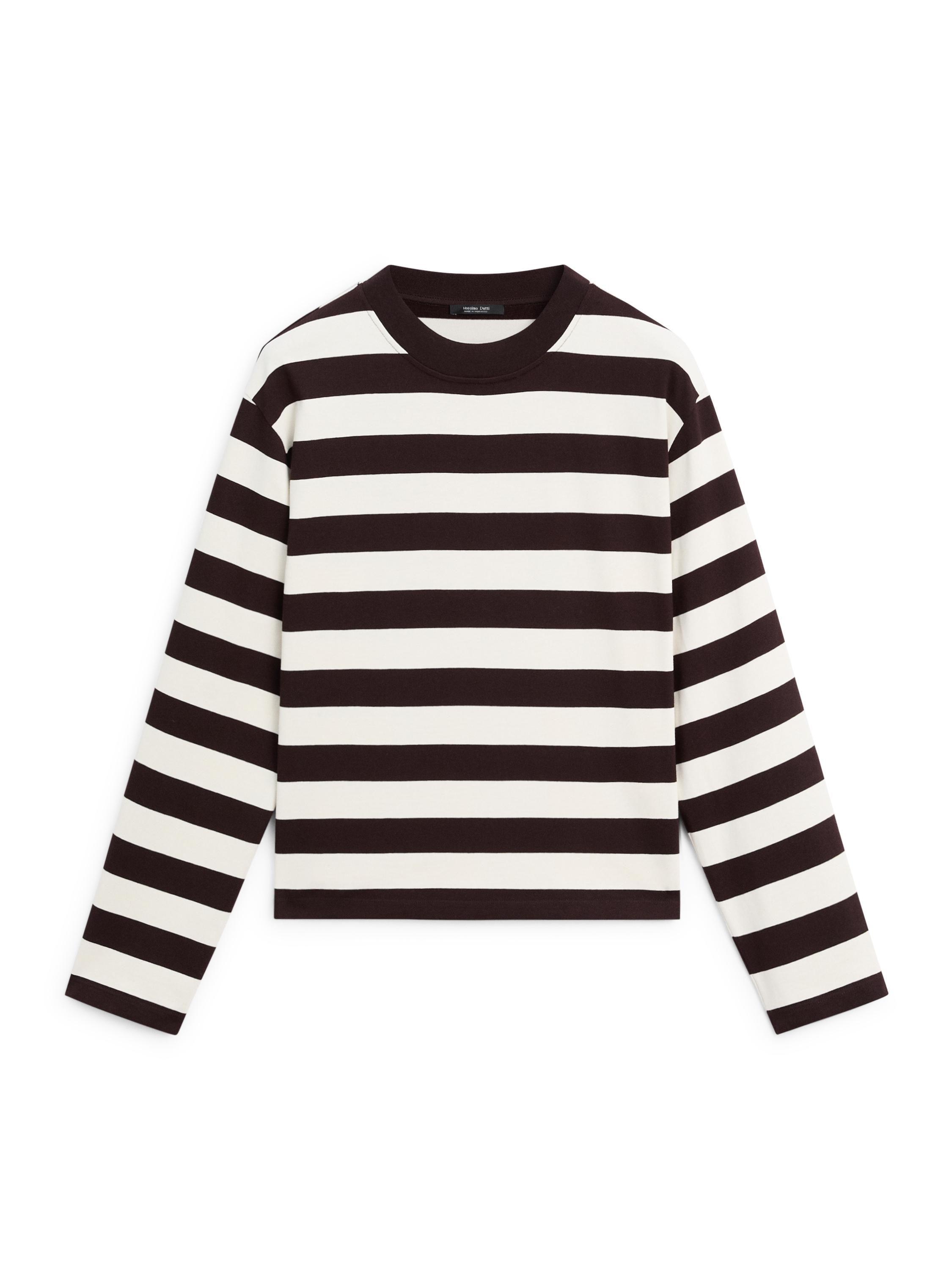 T-shirt made of cotton. Crew neck. Long sleeves. Striped detail.