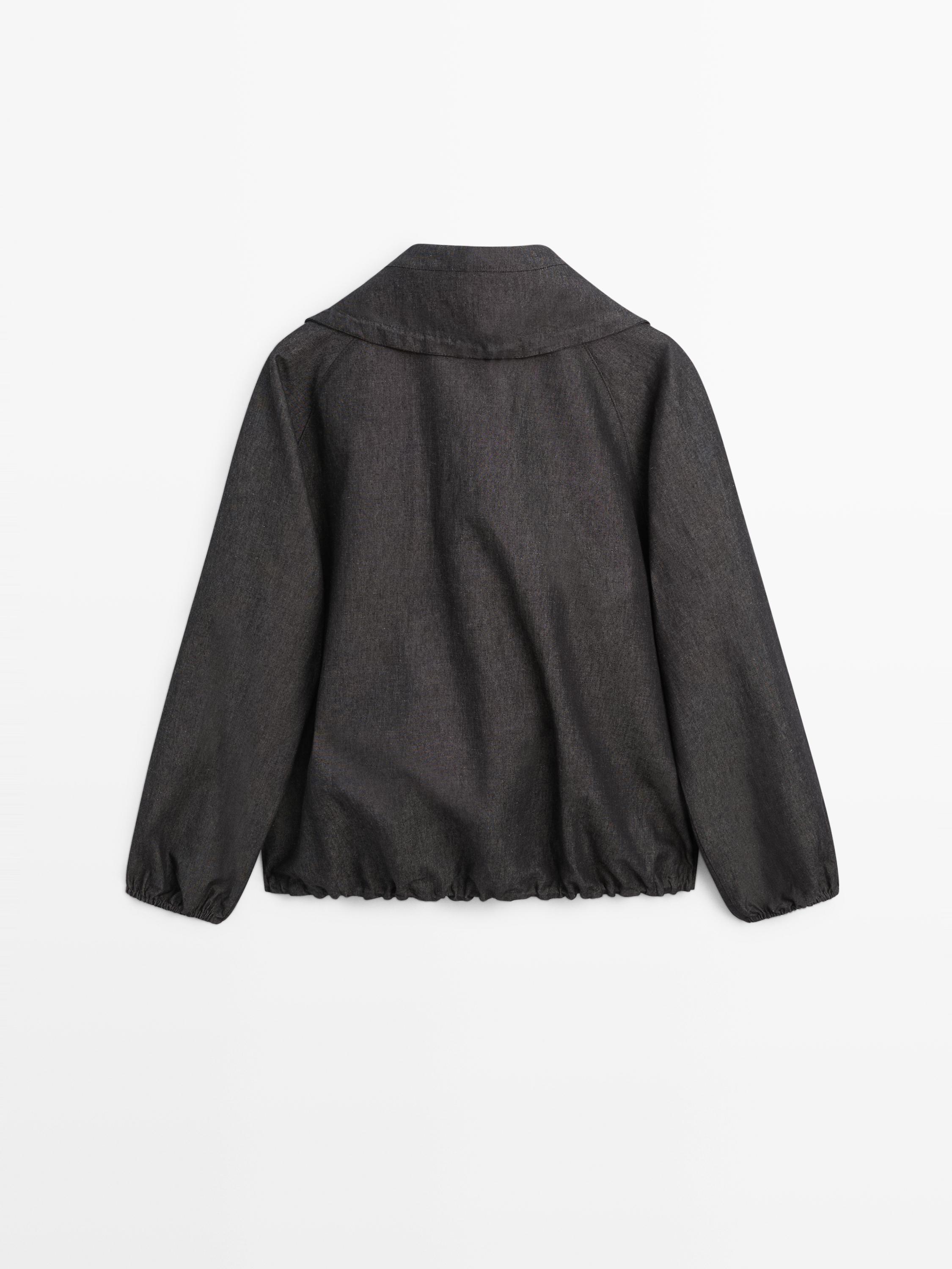 Bomberjack gemaakt van katoenmix. Hoge kraag. Lange mouwen met elastische manchetten. Ritssluiting. Twee steekzakken. Verstelbaar koord in de zoom.