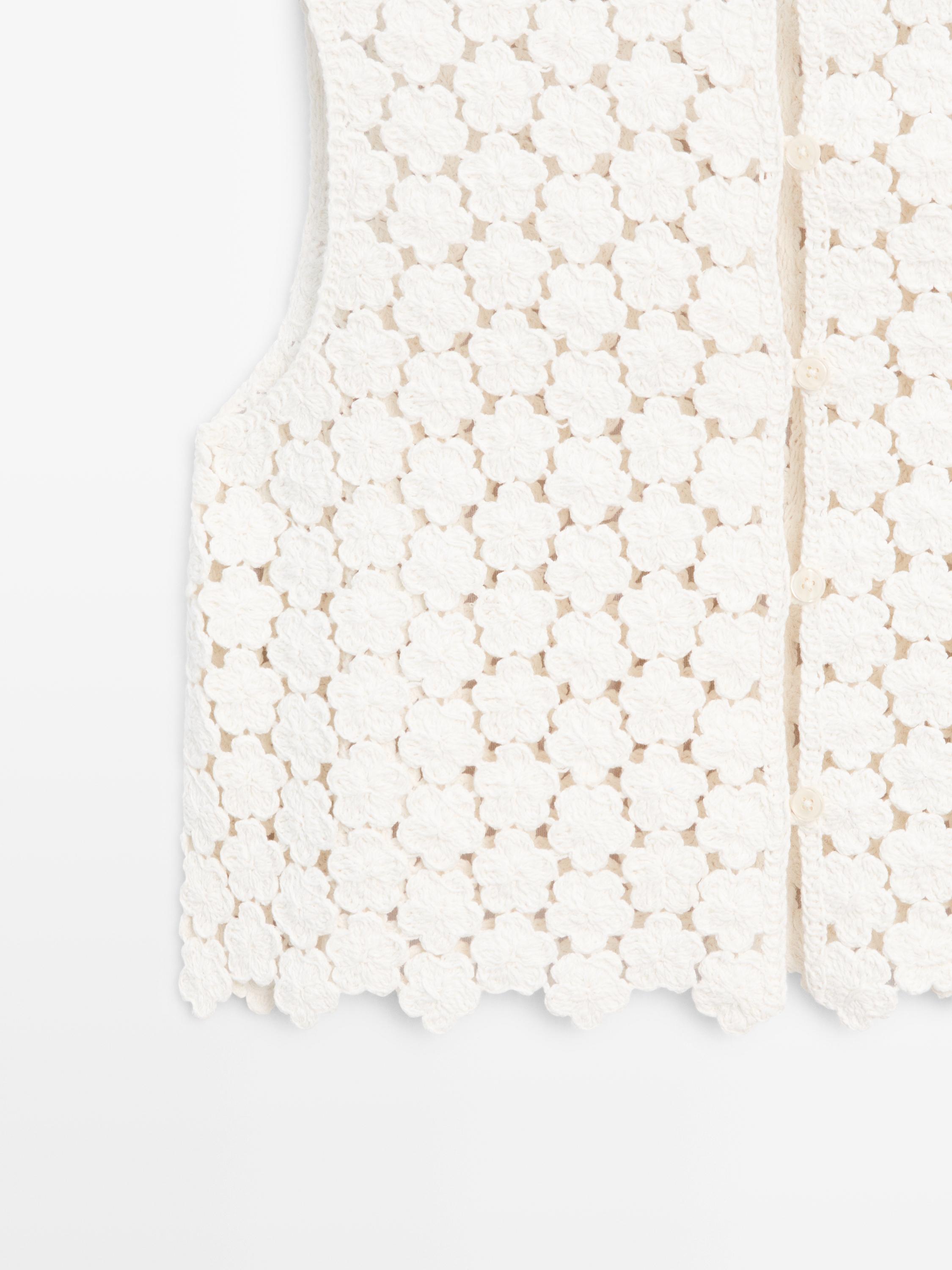 Crochet gilet van katoen met bloemendetails