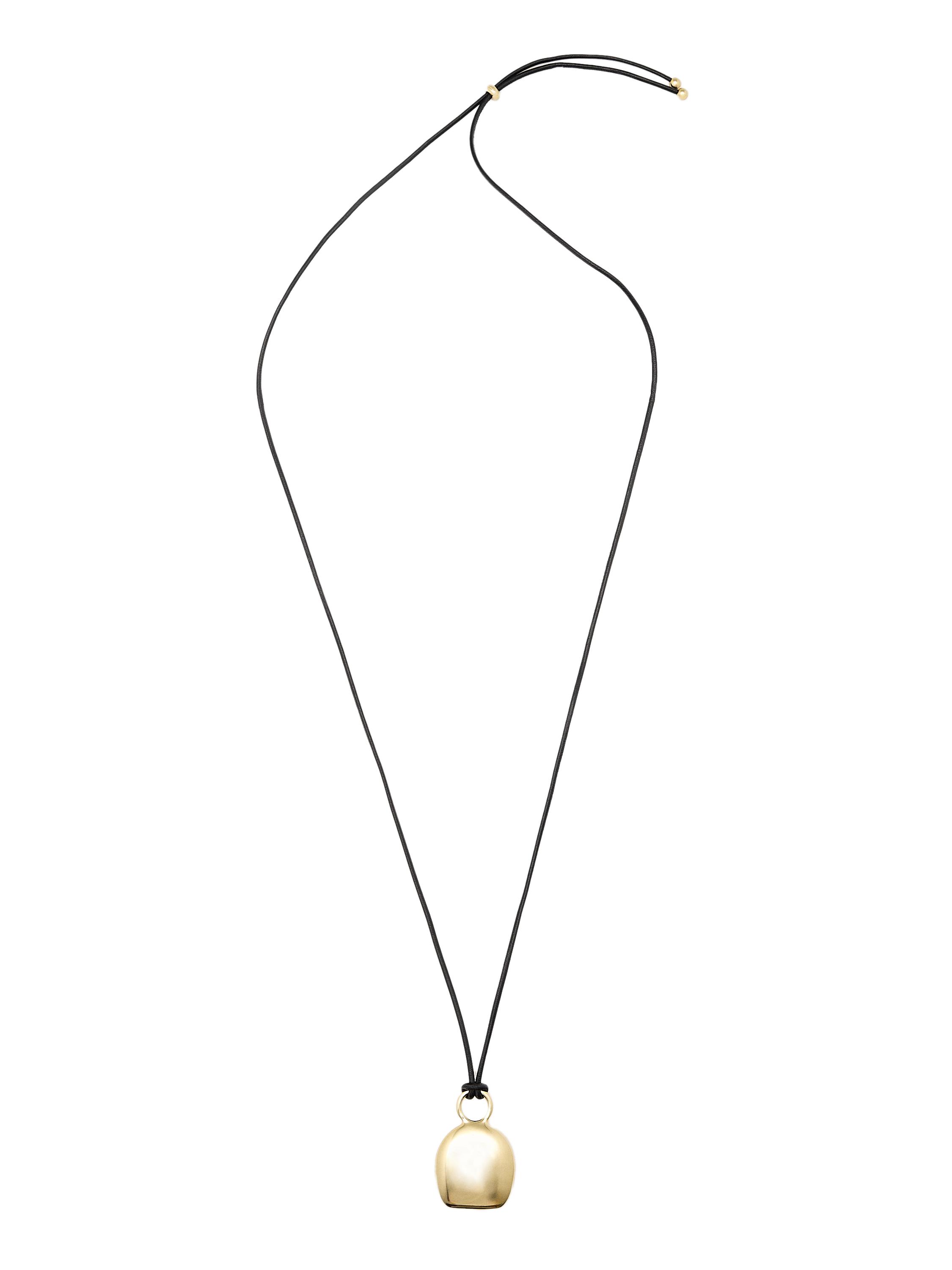 Leren koordketting met metalen uiteinde . Metalen hanger. Koordsluiting. Detail: uiteinde met klein metalen deel .