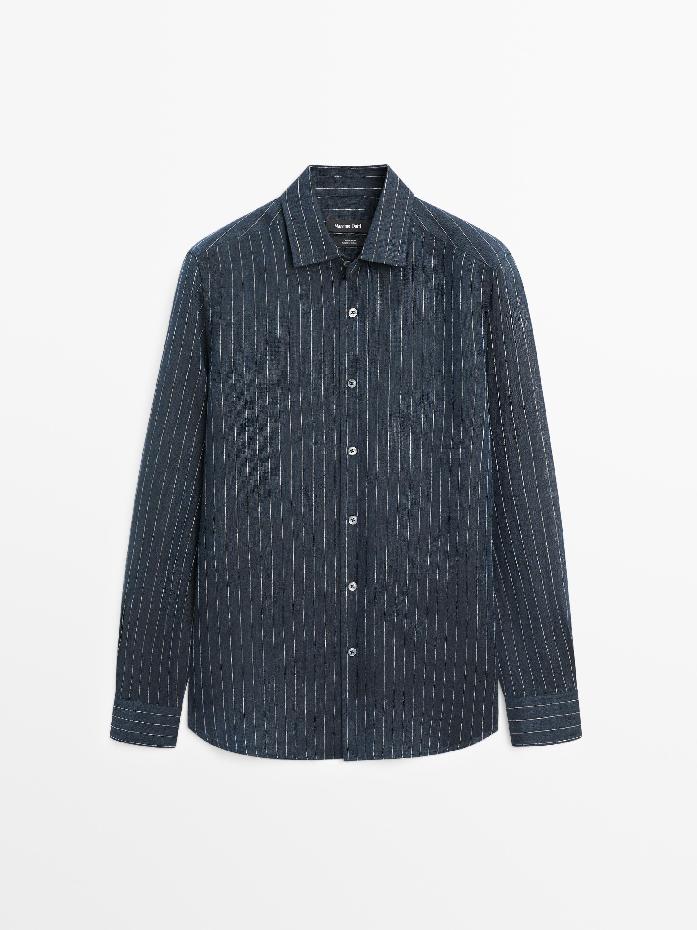 Regular fit: Deze pasvorm biedt comfort met iets meer ruimte op lichaam en armen, en zorgt voor een klassieke en tegelijk ontspannen stijl. Lange mouwen met knoopmanchetten. Overhemdkraag. Knoopsluiting op middenvoor. Gestreepte print. Vervaardigd van 100% linnen.
