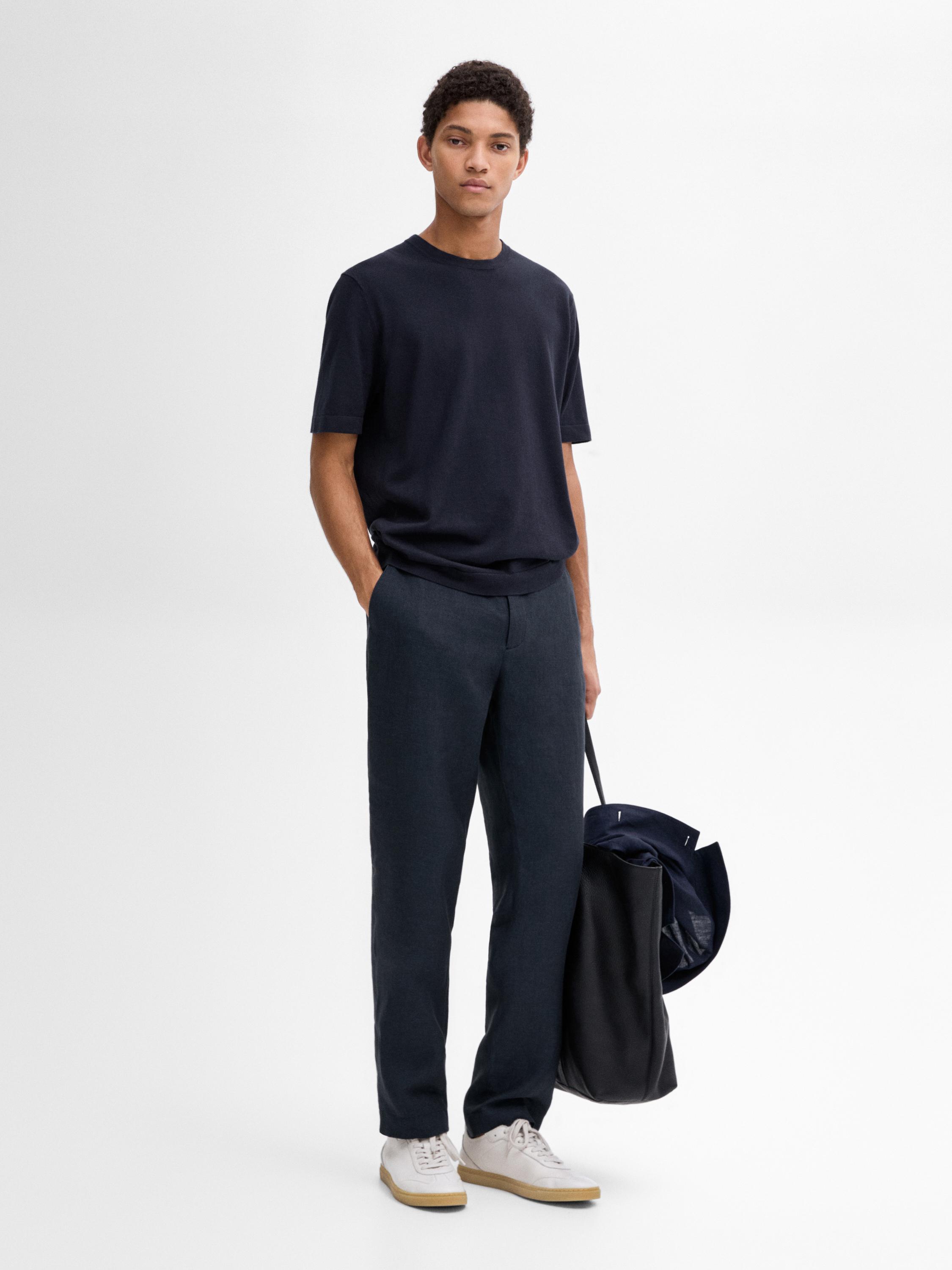 Jersey de punto confeccionado en tejido mezcla algodón. Cuello redondo. Manga corta. Silueta amplia y relajada, sin ajuste al cuerpo.
