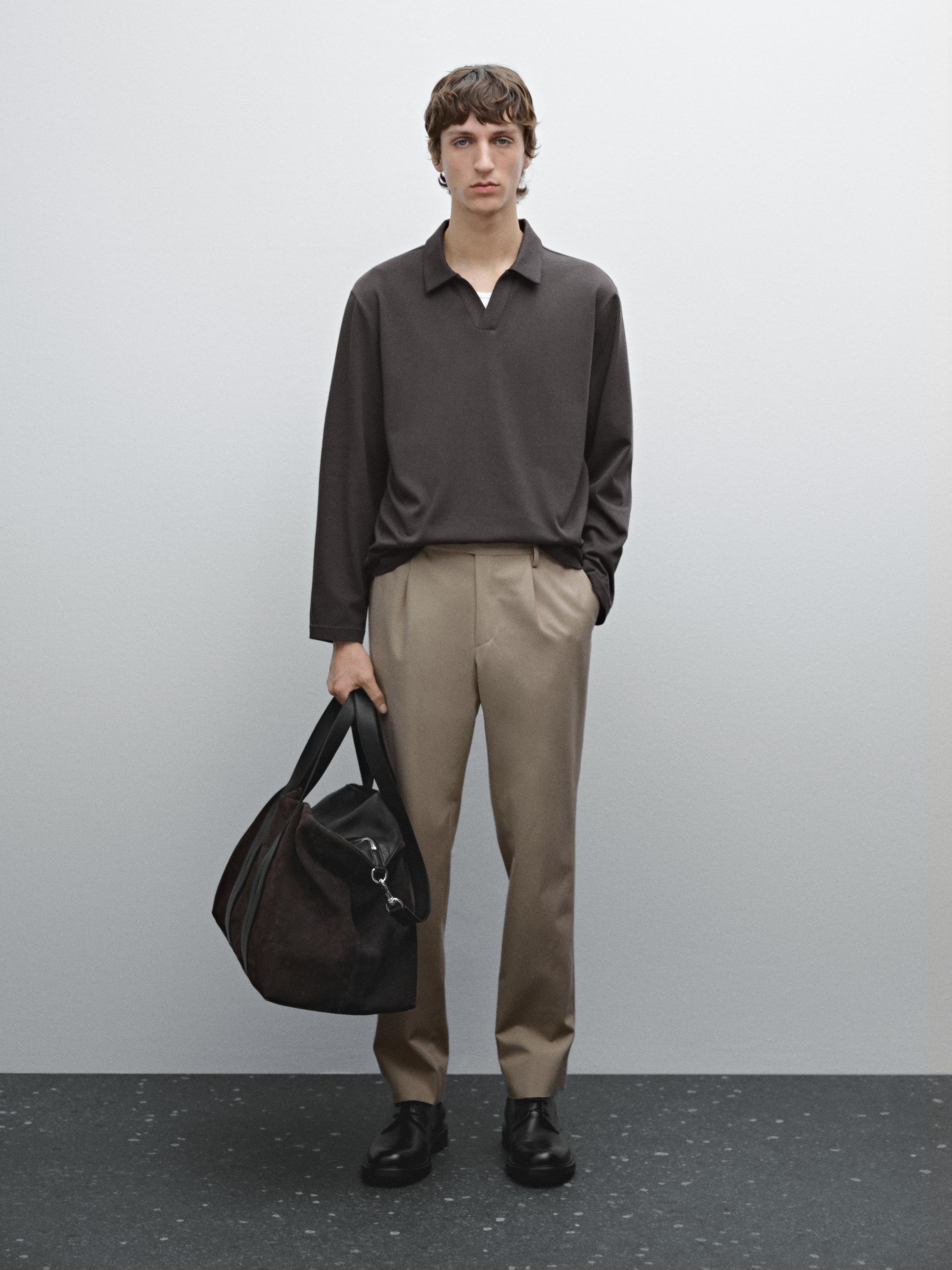 Jersey de punto confeccionado en tejido 100% algodón . Cuello pico tipo polo. Manga larga.