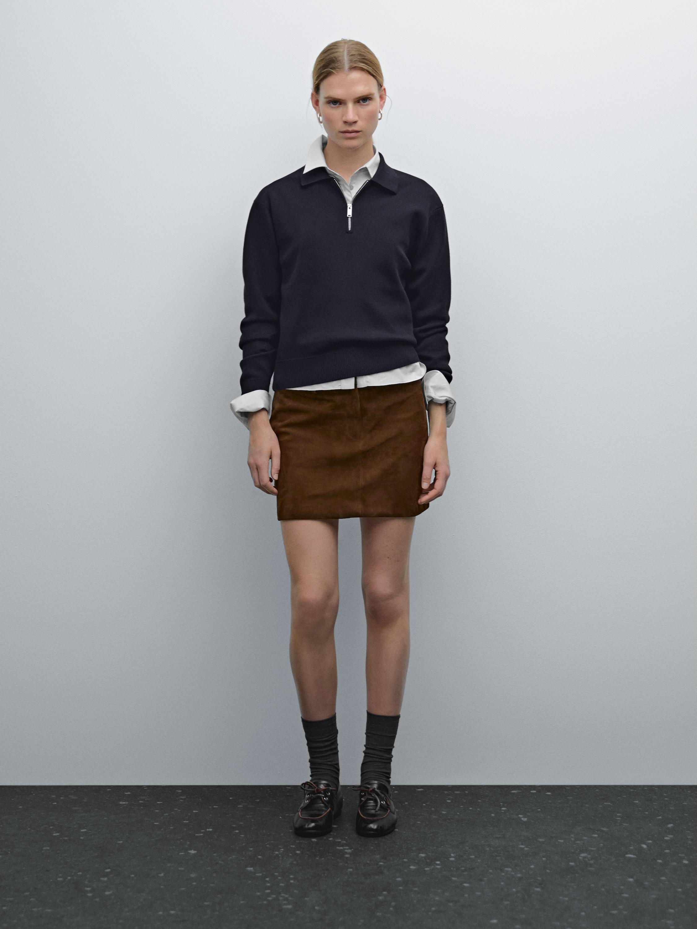 Tejido de punto milano. Jersey de punto confeccionado en tejido 100% algodón . Manga larga. Cuello polo con cremallera. Acabados en rib.