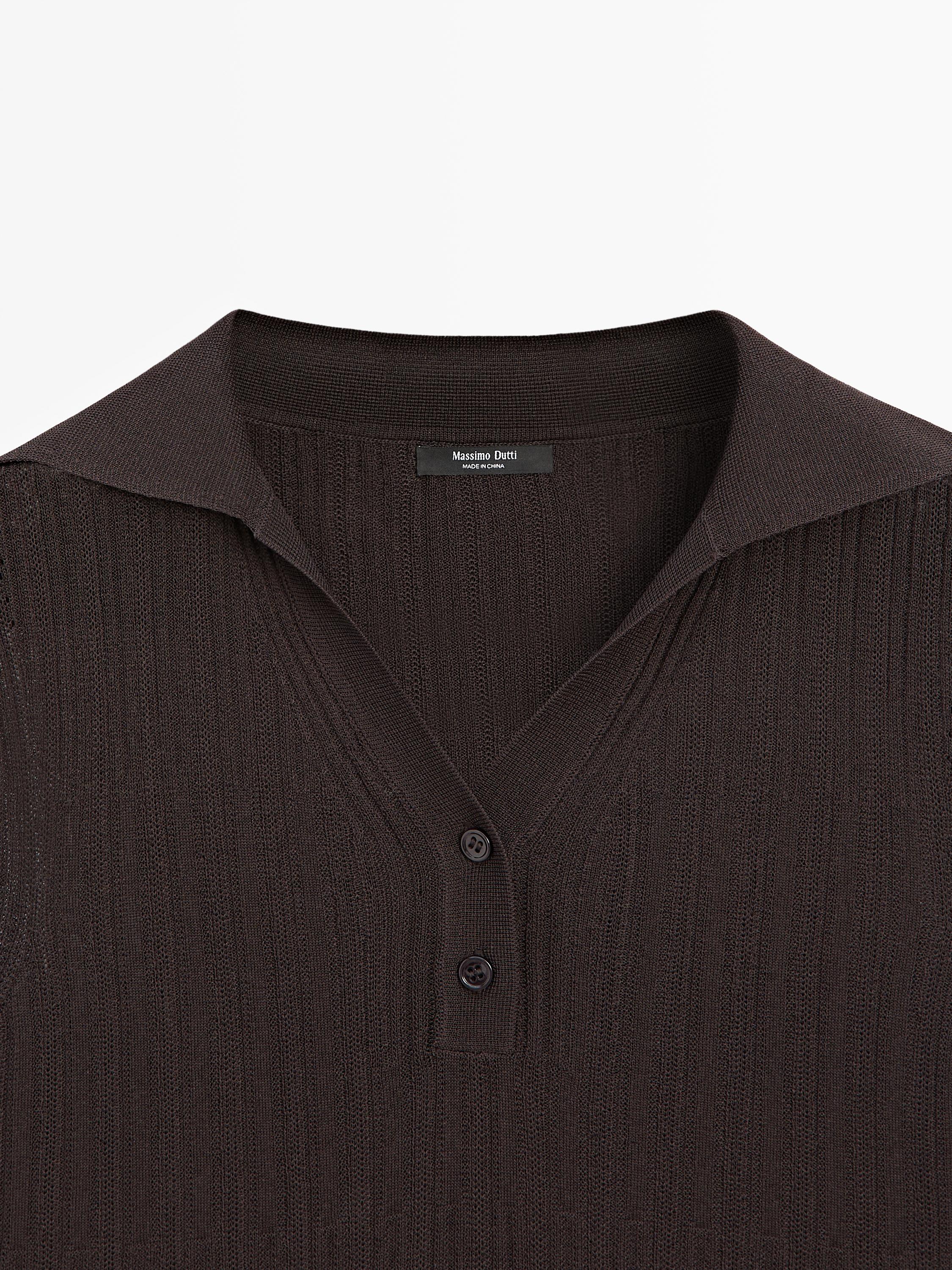 Polo confeccionado en tejido fino y ligero. Sin mangas. Cuello polo con botonadura.